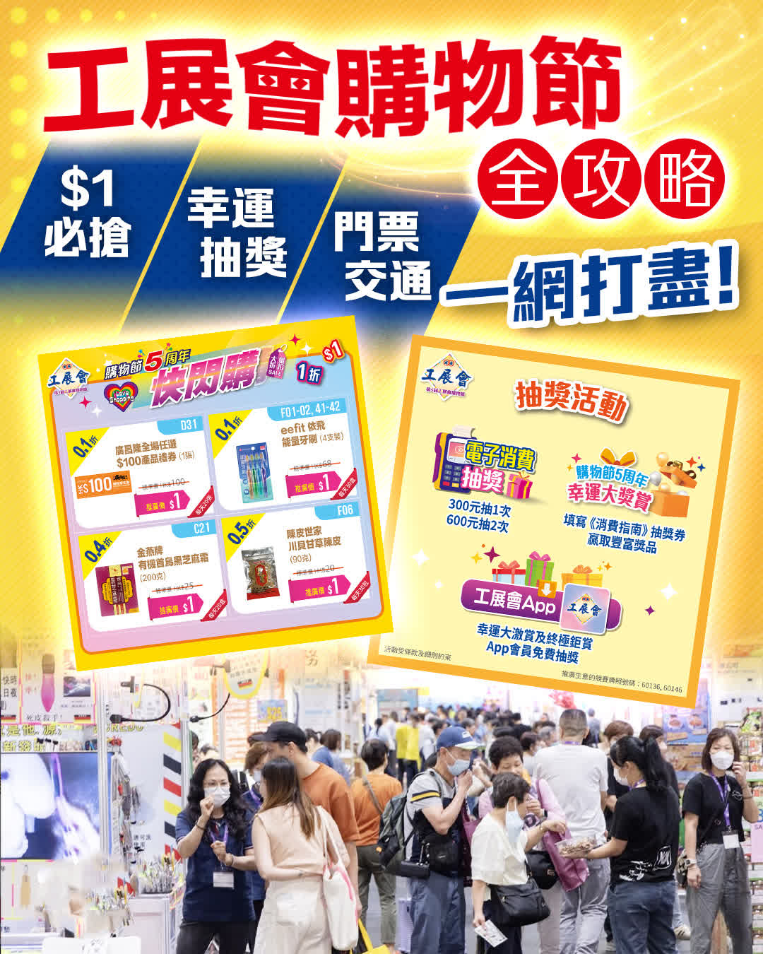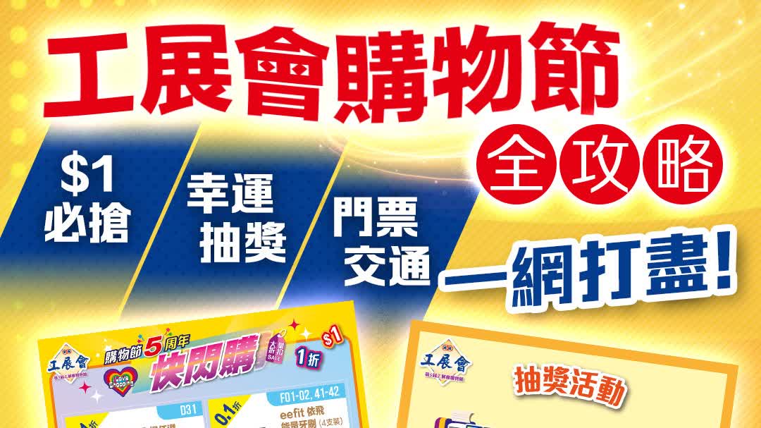 (大公文匯全媒體實習記者李瑋整理報道)「第5屆工展會購物節」8月1日至4日,一連四日於亞洲國際博覽館舉行。適逢五周年,場內規模及優惠力度再升級:逾300個展位、8大主題展區、免費入場方法、免費穿梭巴士、多項HK$1爆價產品、抽獎活動及表演節目一應俱全,無論是想掃平貨、親子同樂、打卡遊玩或品嘗美食,都能輕鬆享受。