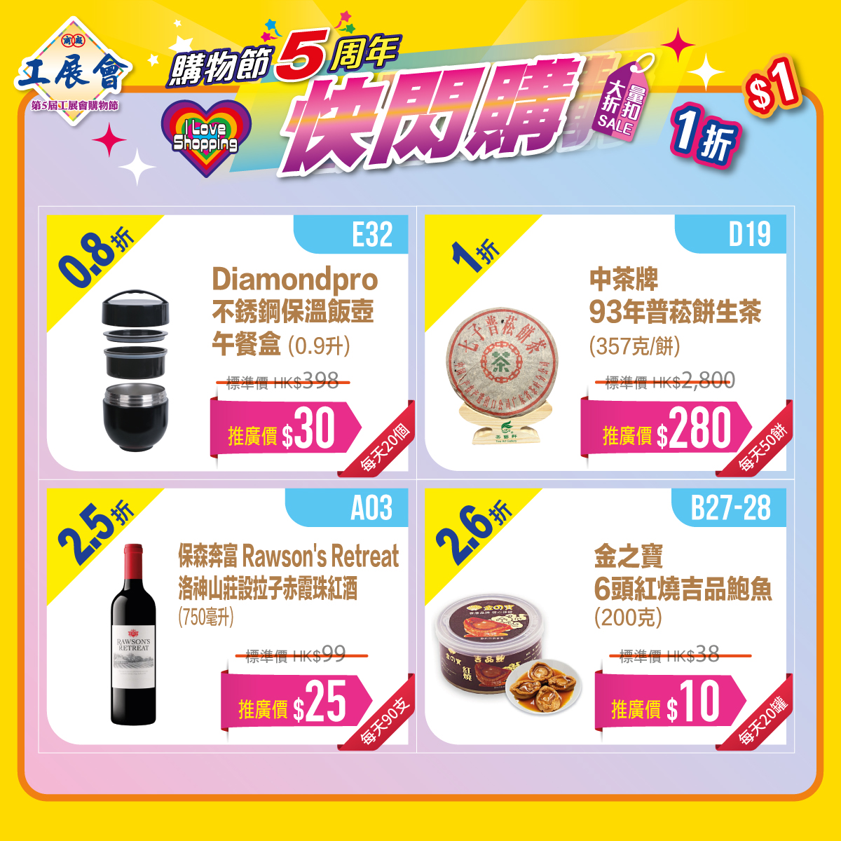 年度最強優惠「1蚊雞」限時登場!現場設有多個搶購時段,部分攤位推出驚爆價HK$1產品,包括即食臘腸、陳皮、黑芝麻霜等食品,更有1折保溫飯壺與茶磚!想搶$1換$100禮券?記得提早排隊!