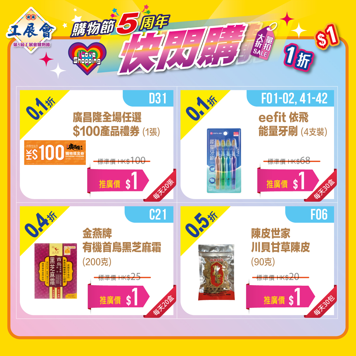 - $1 帶走 eefit 能量牙刷 (攤位 F01-02, 41-42) - 抵到笑!(原價$68)