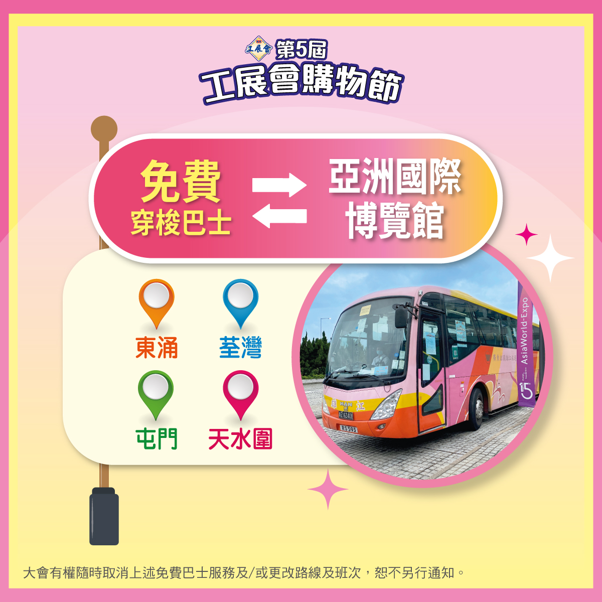 免費巴士:展會期間提供3條免費巴士路線,分別往返荃灣、屯門與天水圍,具體班次可點擊查看。