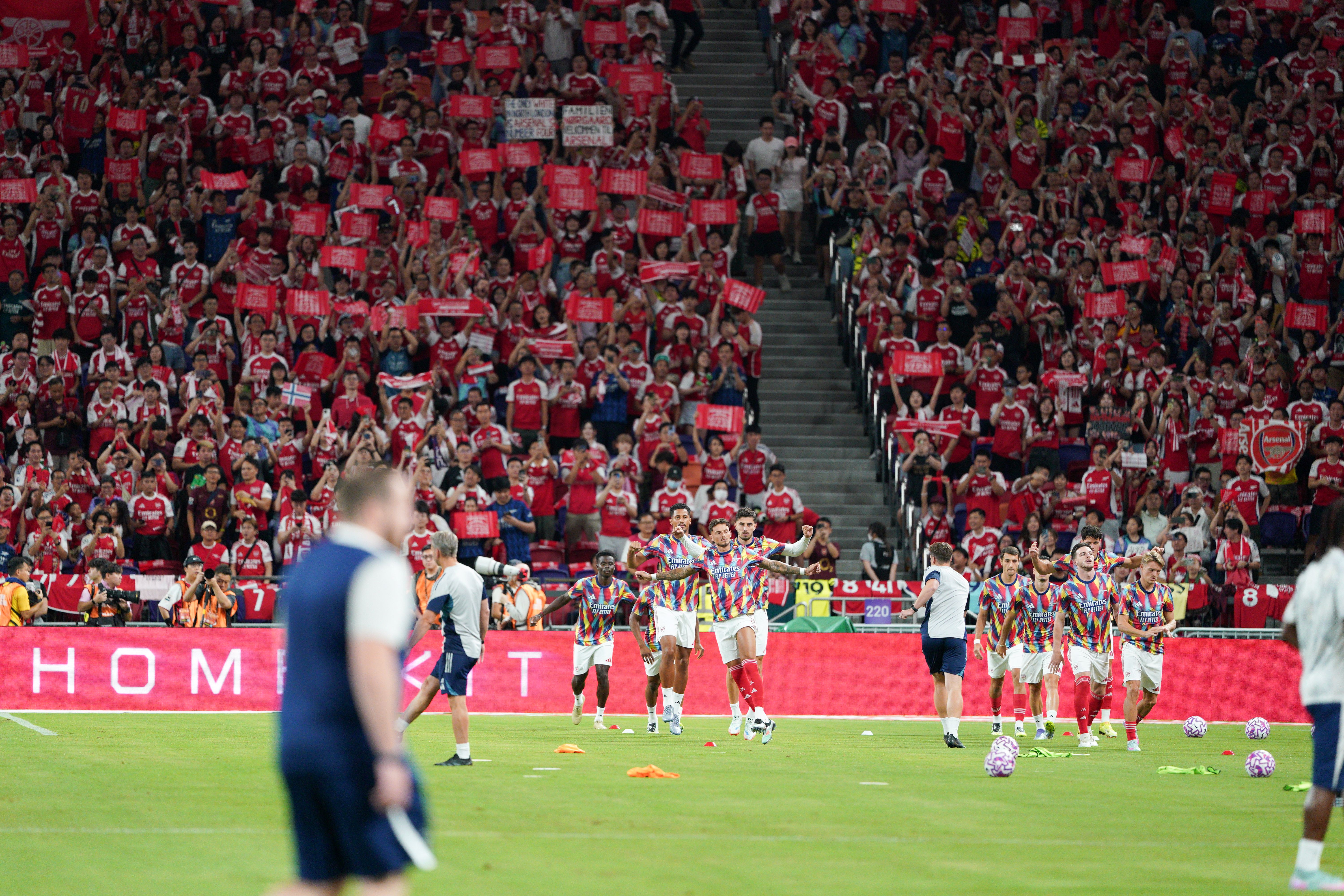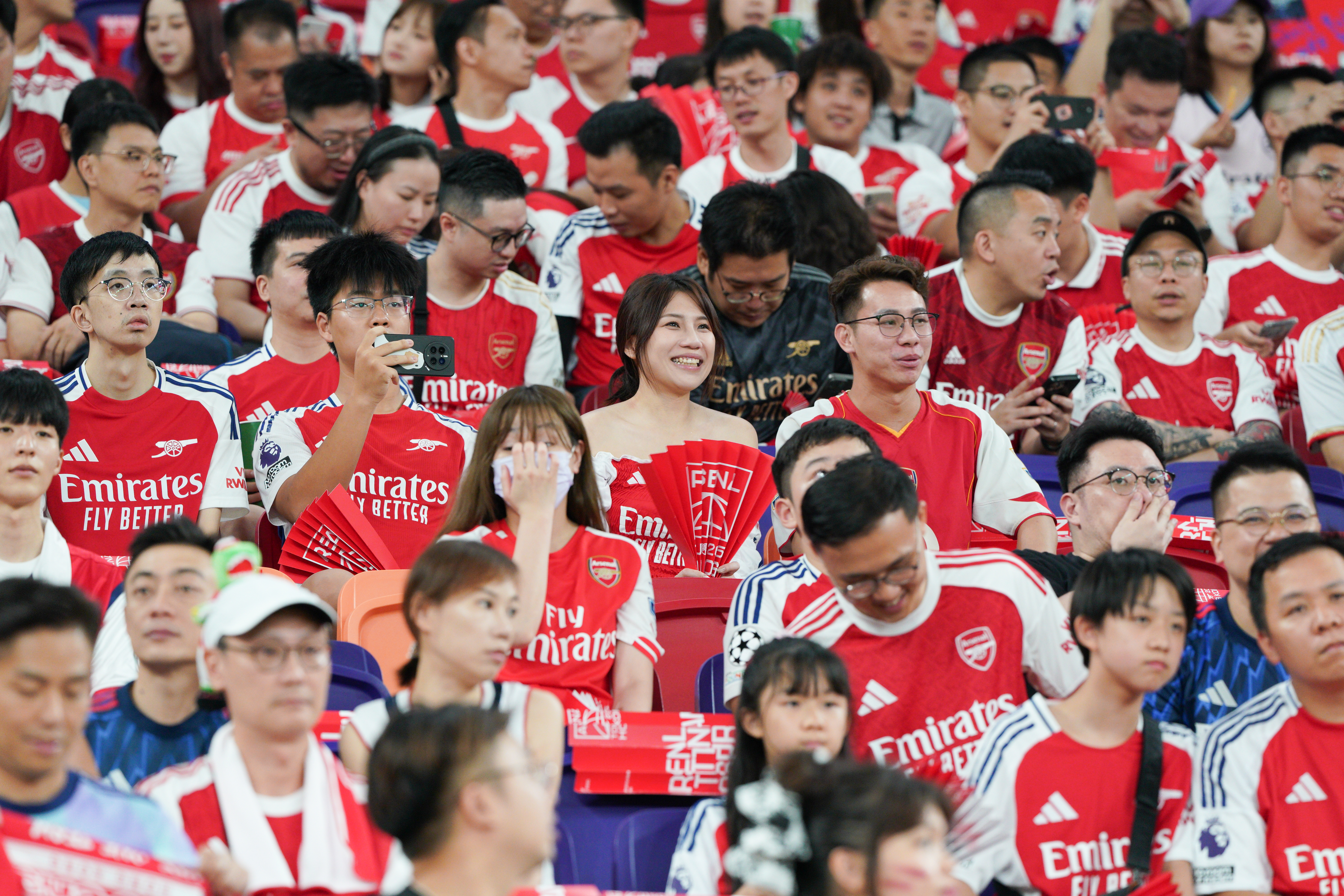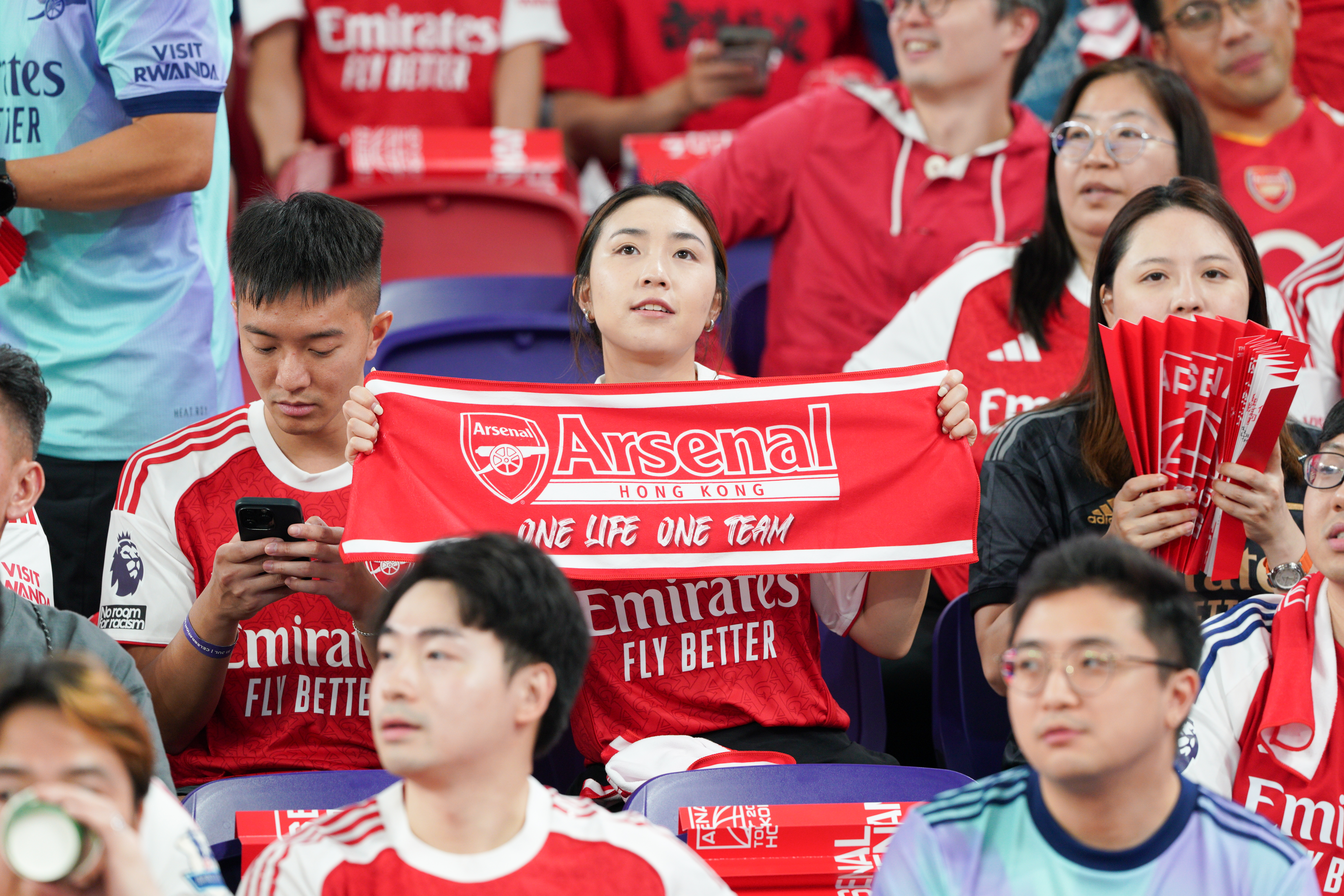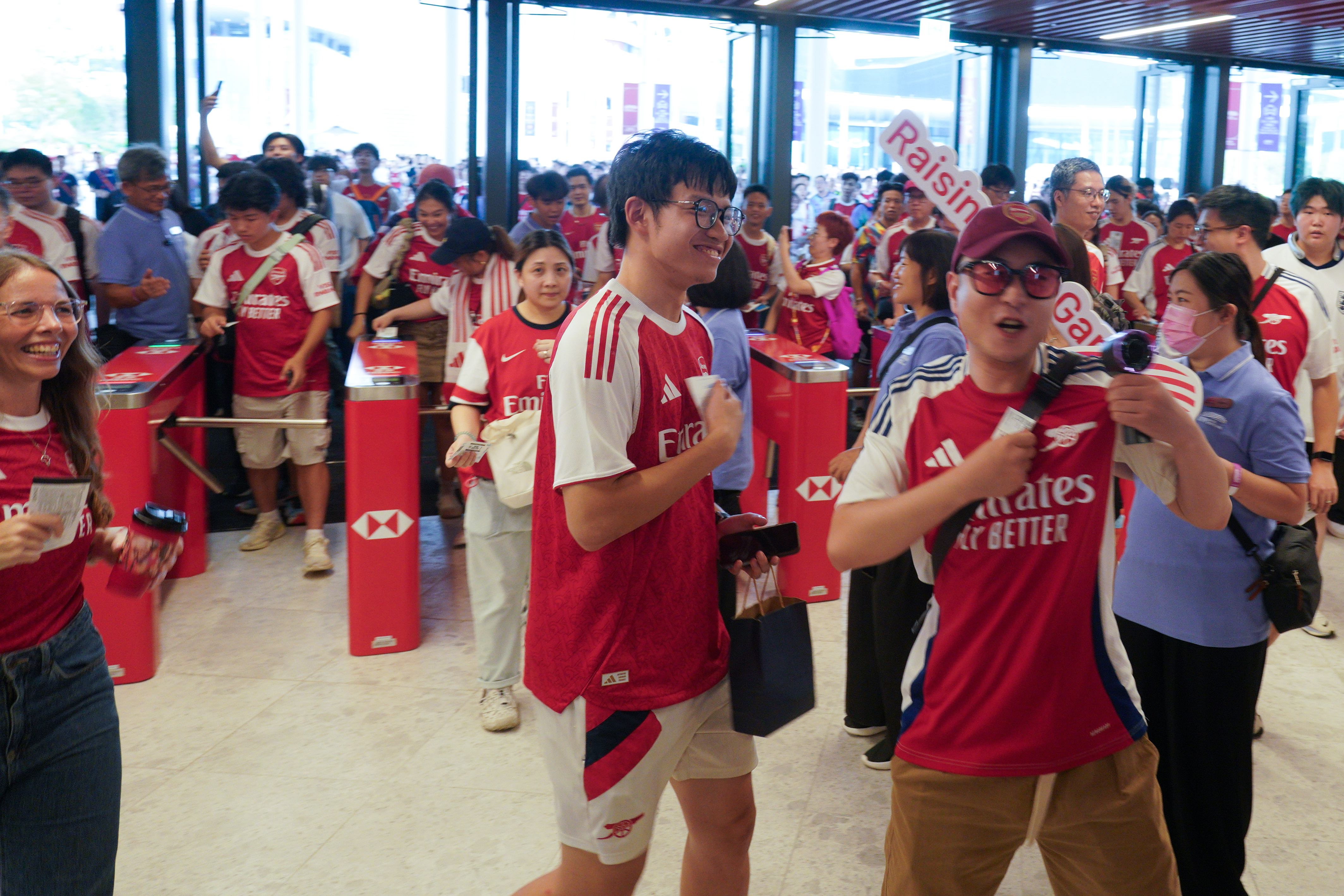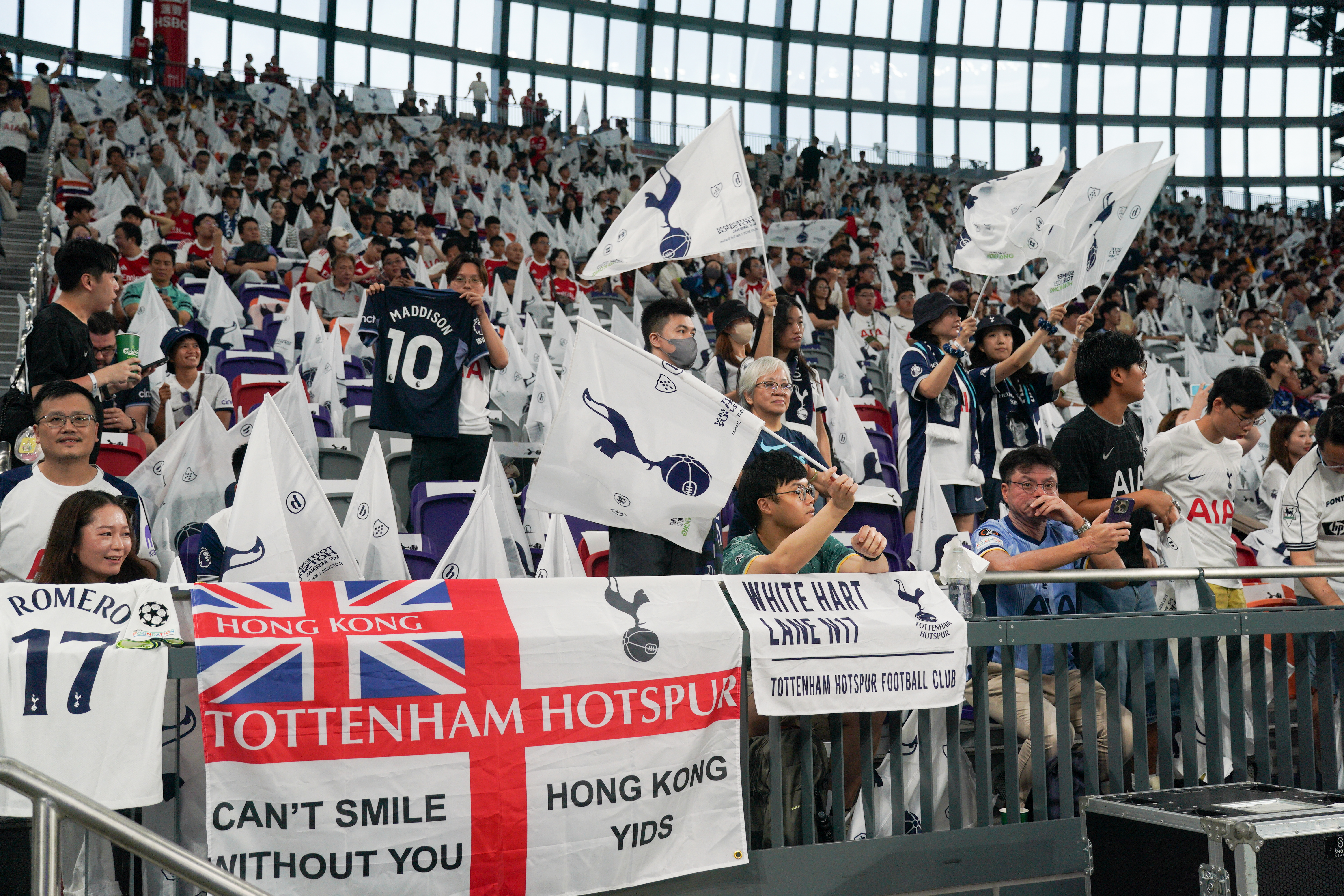 大公文匯全媒體報道,「香港足球盛會」的「健絡通盃」今晚(31日)7時半在啟德主場館開打,英格蘭兩大宿敵阿仙奴與熱刺上演首場海外「北倫敦打吡」!球迷熱情爆棚,現場氣氛熱烈,揮舞各自球隊的旗幟,為球員吶喊助威!