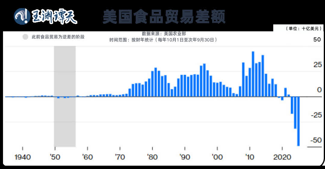 根據美國農業部的預測,今年美國將連續第三個財年出現食品貿易逆差,這還是過去70年來首次,進口額將超過出口額近500億美元。