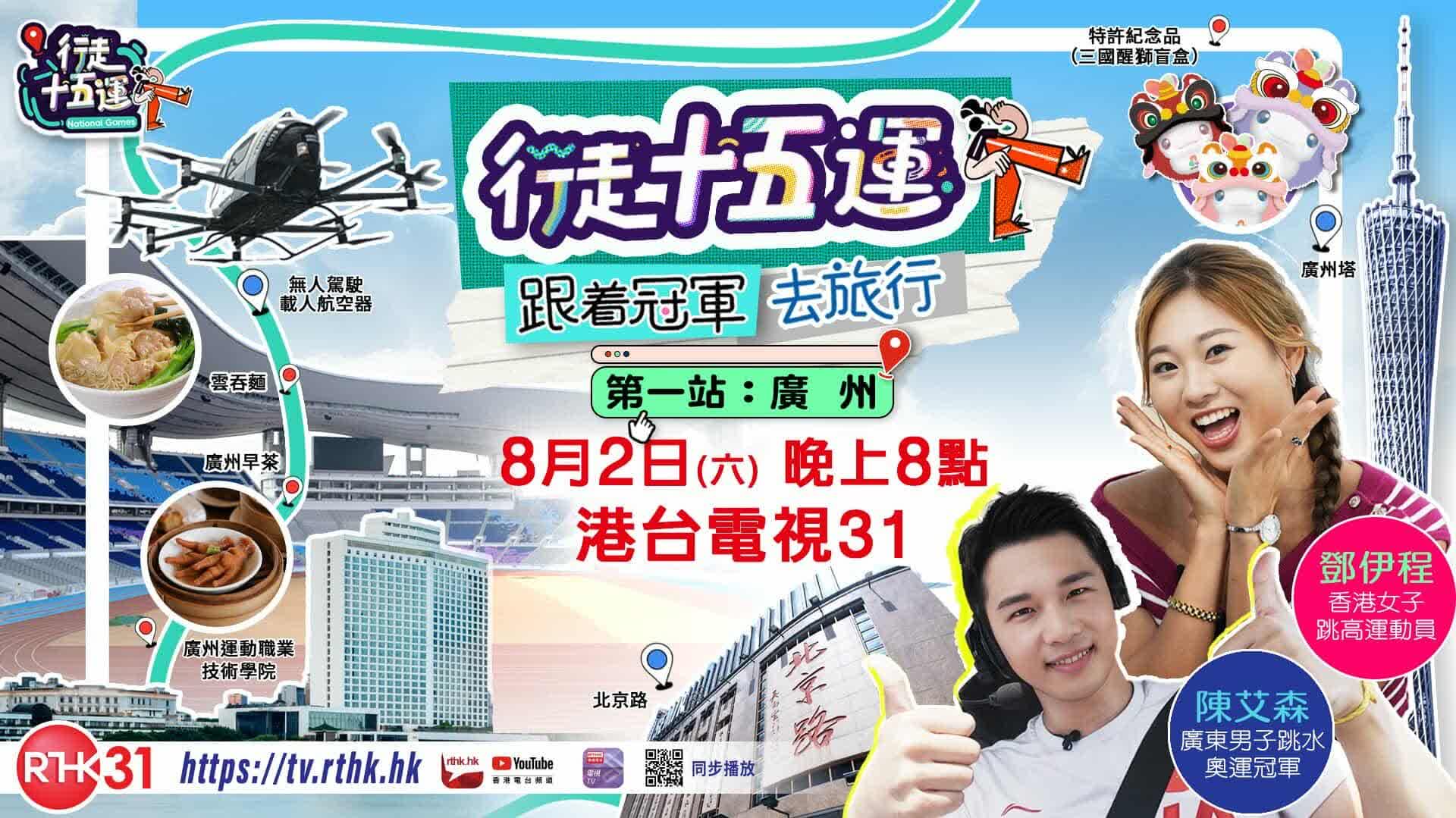 《迎戰全國運動會(四)─ 行走十五運》將於8月2日起,逢星期六晚上8時在港台電視31播映。行走十五運,跟著冠軍去旅行!