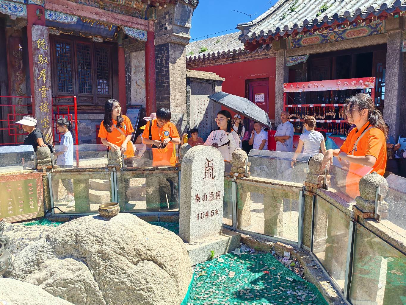 當日,參訪團一行還走進岱廟,參觀泰山現存規模最大的古建築群。岱廟,又稱東嶽廟,始建於西漢武帝時期,是中國古代帝王供奉泰山神靈,舉行祭祀大典的場所,其主殿天貺殿與北京故宮太和殿、曲阜孔廟大成殿並稱「中國古代三大宮殿」。
