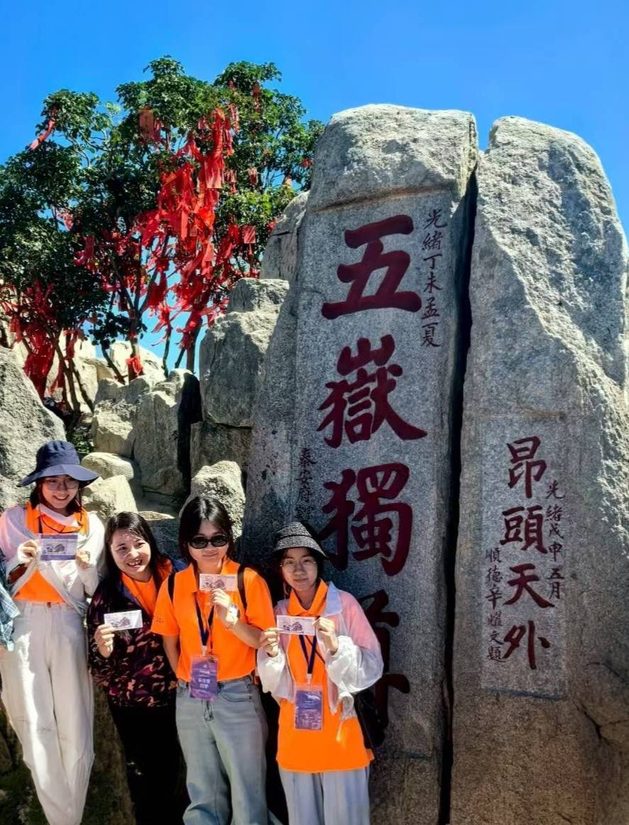 來自香港新界鄉議局元朗區中學的林子柔和李卓曦均是首次登泰山,她們紛紛點讚泰山的壯麗秀美:「以前就對五嶽之首泰山心嚮往之,今次前來果然名不虛傳,不僅沿途風景美不勝收,更從摩崖石刻、石碑等感受到了歷史和文化。尤其在山頂,真的體會到了『一覽眾山小』的豪情!」