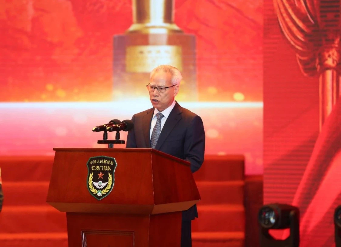 澳門行政長官岑浩輝致詞表示,駐澳部隊自進駐澳門以來,始終堅定維護國家主權、安全、發展利益,始終全面準確貫徹「一國兩制」、「澳人治澳」、高度自治方針,始終嚴格遵守澳門基本法、駐軍法和相關法律,全面履行澳門防務職責,全力支持特區政府施政,積極開展與澳門社會的多元互動,持續加強對澳門青年的愛國熏陶,為具有澳門特色的「一國兩制」成功實踐增強底氣、保駕護航,贏得了澳門同胞的廣泛贊譽,贏得了社會各界的真心尊敬。