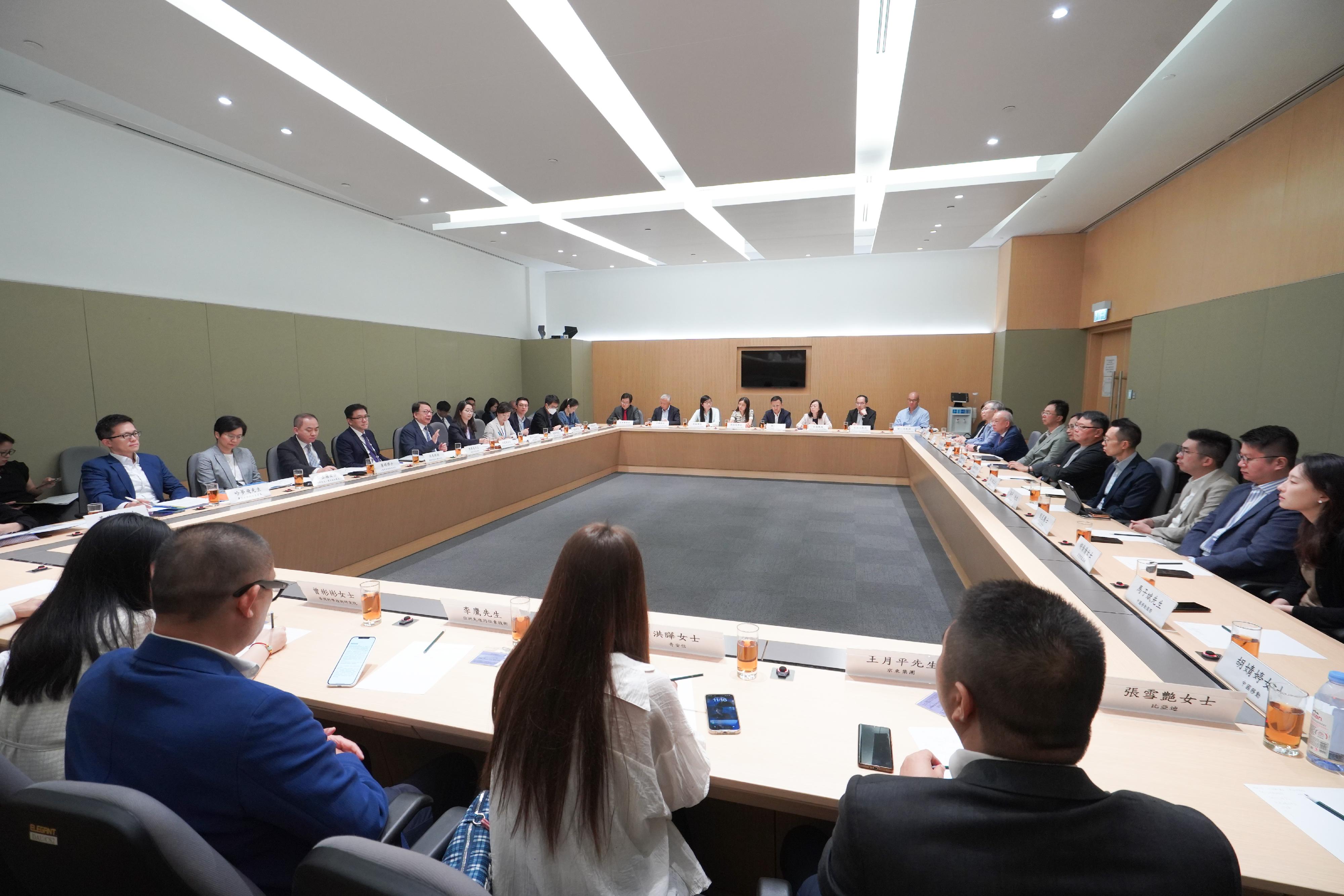 由政務司司長陳國基領導的教育、科技和人才委員會(委員會)今日(八月一日)與創新科技(創科)界的持份者會面,就推進教育、科技和人才一體化融合發展的工作交換意見。創新科技及工業局局長孫東教授、教育局局長蔡若蓮博士,以及署理勞工及福利局局長何啟明亦一同出席。