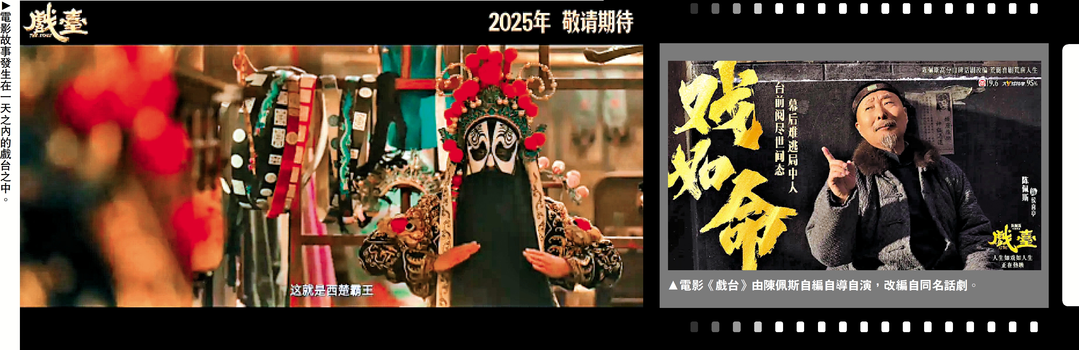 由陳佩斯自編自導,陳佩斯、黃渤、姜武、尹正領銜主演,改編自同名話劇的電影《戲台》,於7月25日在內地上映。該片講述民國初年台上台下、侯班主等各色人物的命運陰差陽錯地勾連在一起,上演了一齣舊世梨園的荒誕喜劇故事。截至7月30日晚,影片票房已突破2億元人民幣。
