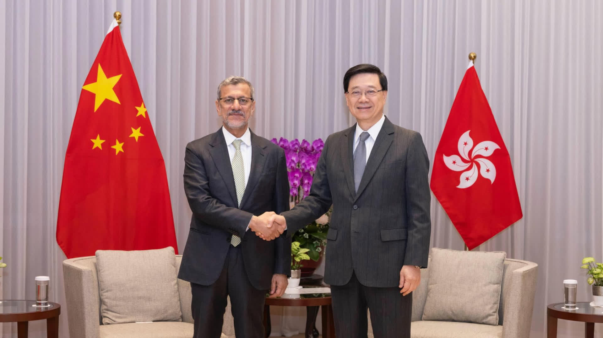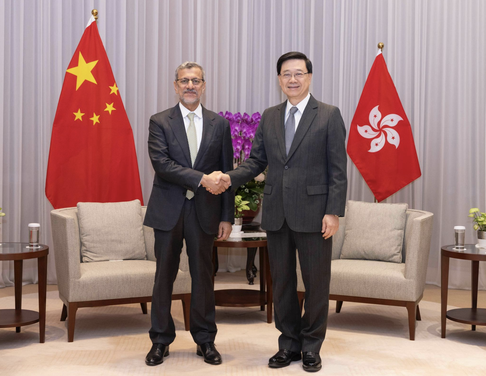 李家超表示,期望在HE Abdulsalam Al Murshidi的帶領下,香港與阿曼可進一步加強各方面的交流合作。阿曼是海灣阿拉伯國家合作委員會成員之一,本屆政府一直致力於推進與海合會國家的交流。為此,他曾於2023年及今年親率商貿代表團訪問多個海合會成員國。其中,在今年5月對卡塔爾和科威特的訪問中,雙方共達成59項合作備忘錄與協議。李家超強調,特區政府會繼續發揮香港在「一國兩制」下內聯外通的優勢,深化國際交往合作,展現香港和內地優勢互補的協同效應力量。