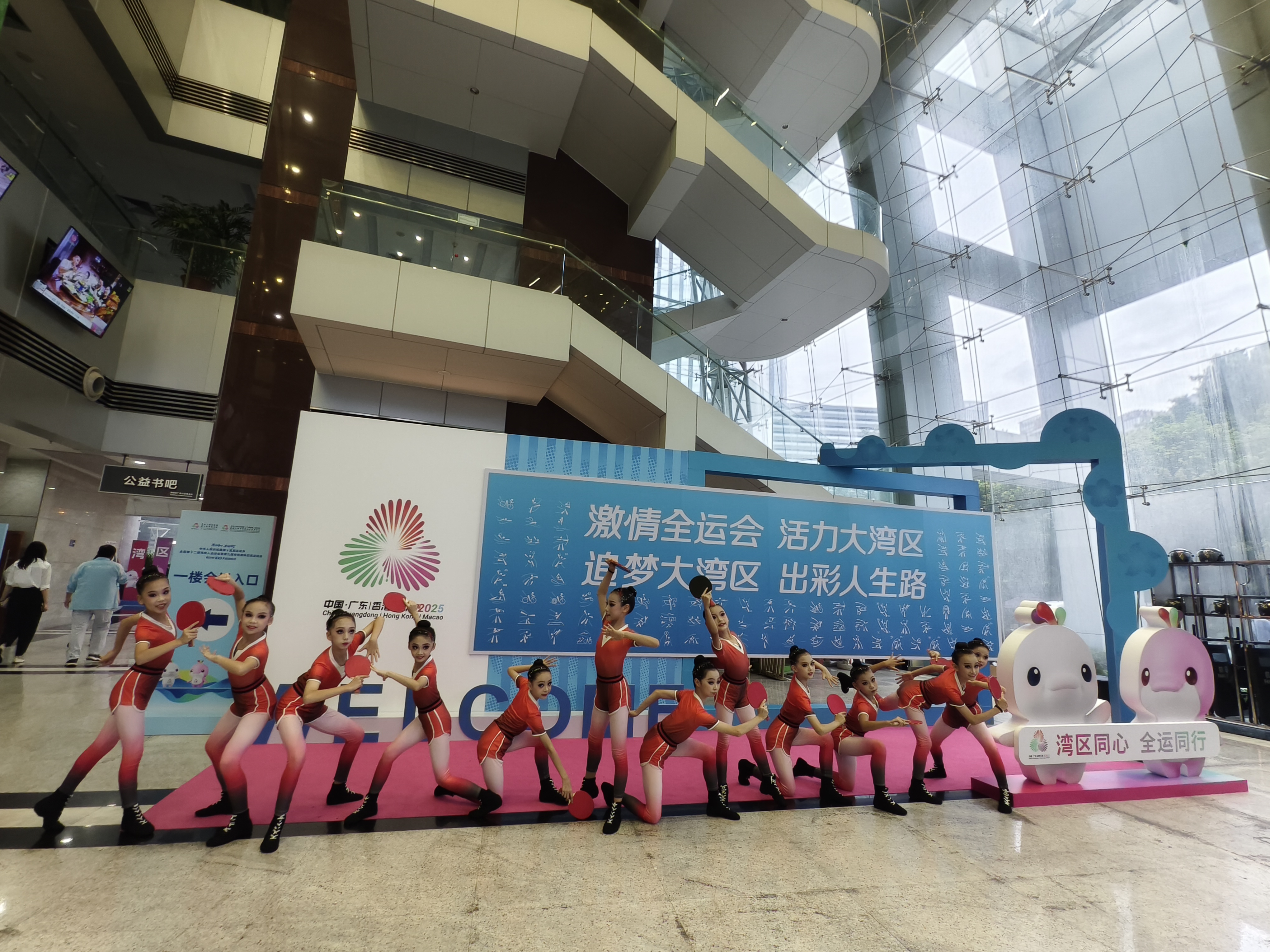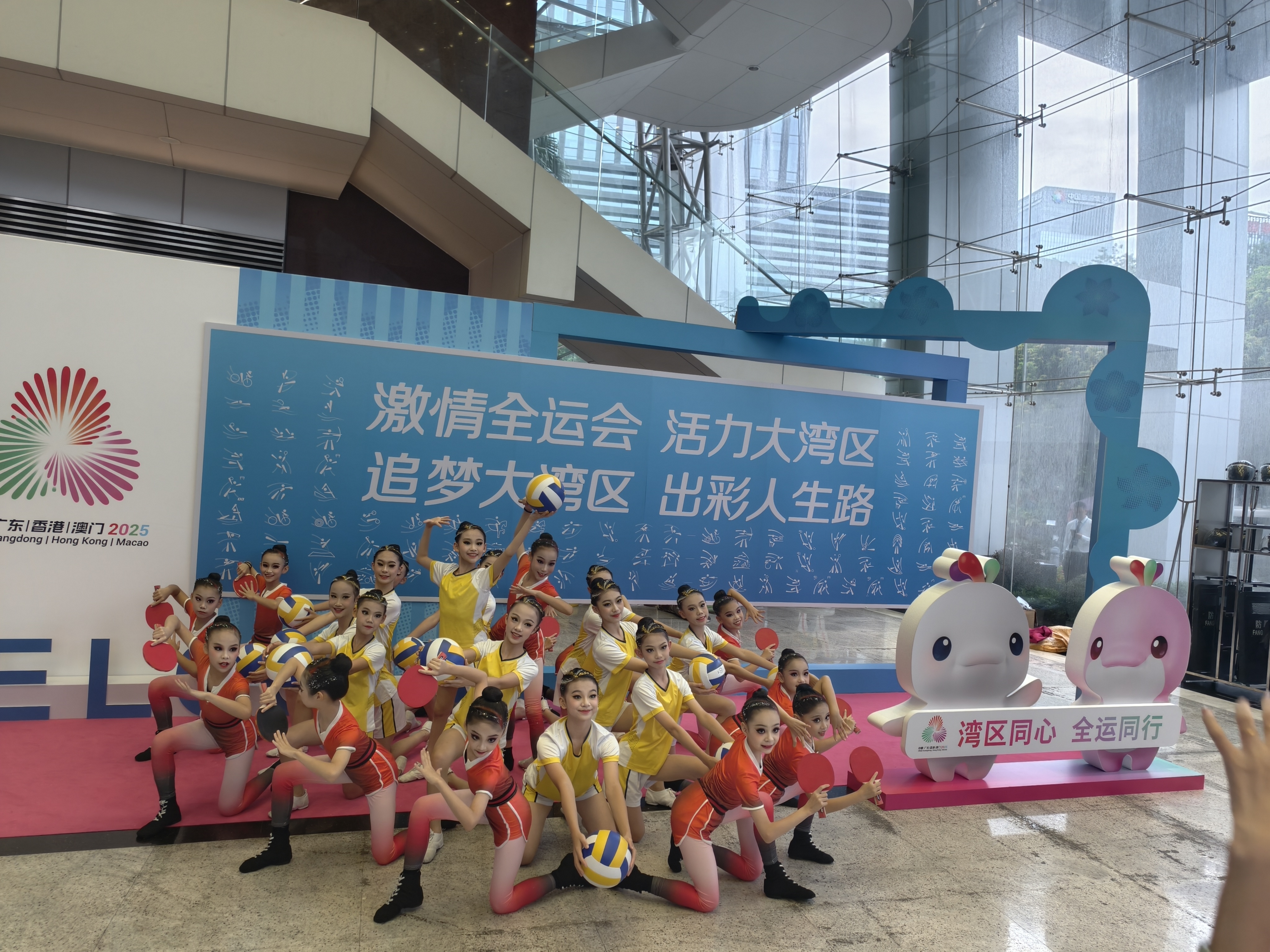 「我們的開場舞集合了乒乓球、排球、擊劍、花樣游泳等項目,並融合了粵港澳的元素以及運動精神在其中。」舞蹈帶隊老師許老師表示。