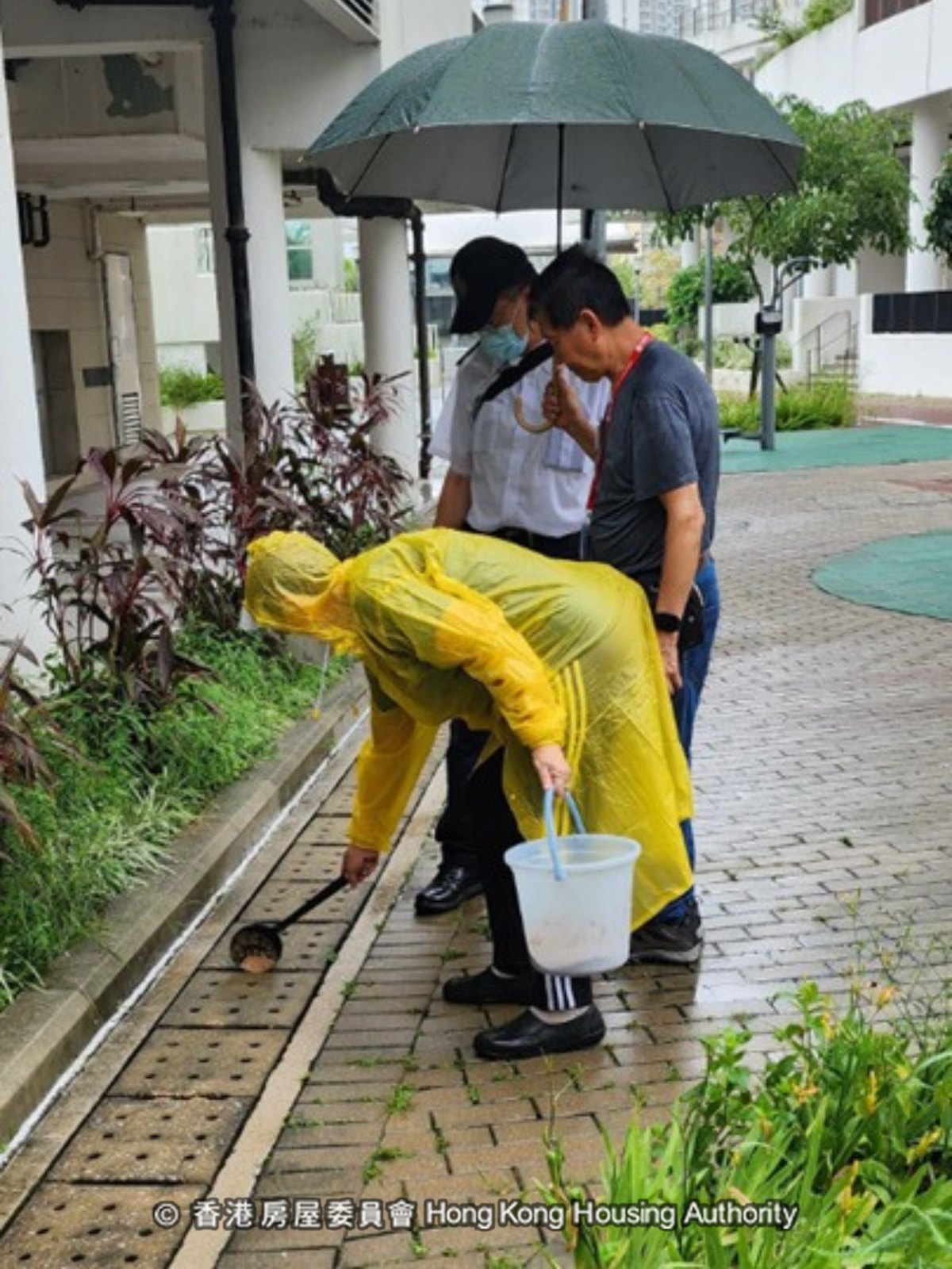 署方又派員堵塞渠蓋孔,清理渠口積水與雜草;亦與食環署職員檢視全邨蚊患情況,制定應對蚊子方案。另外,工作人員亦在安達邨各座大堂當眼地方張貼防蚊小貼士,提醒居民清理花盆積水及垃圾。