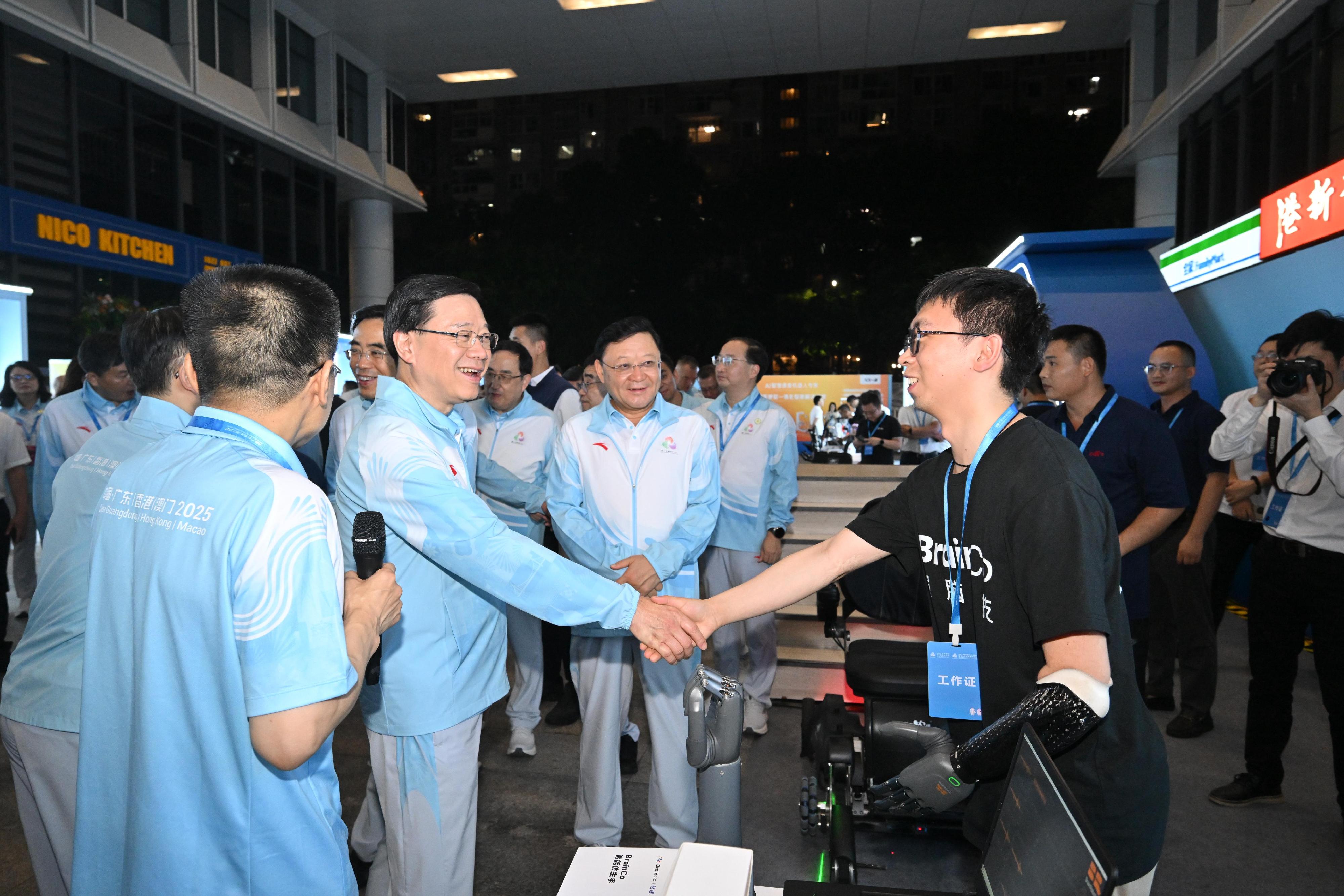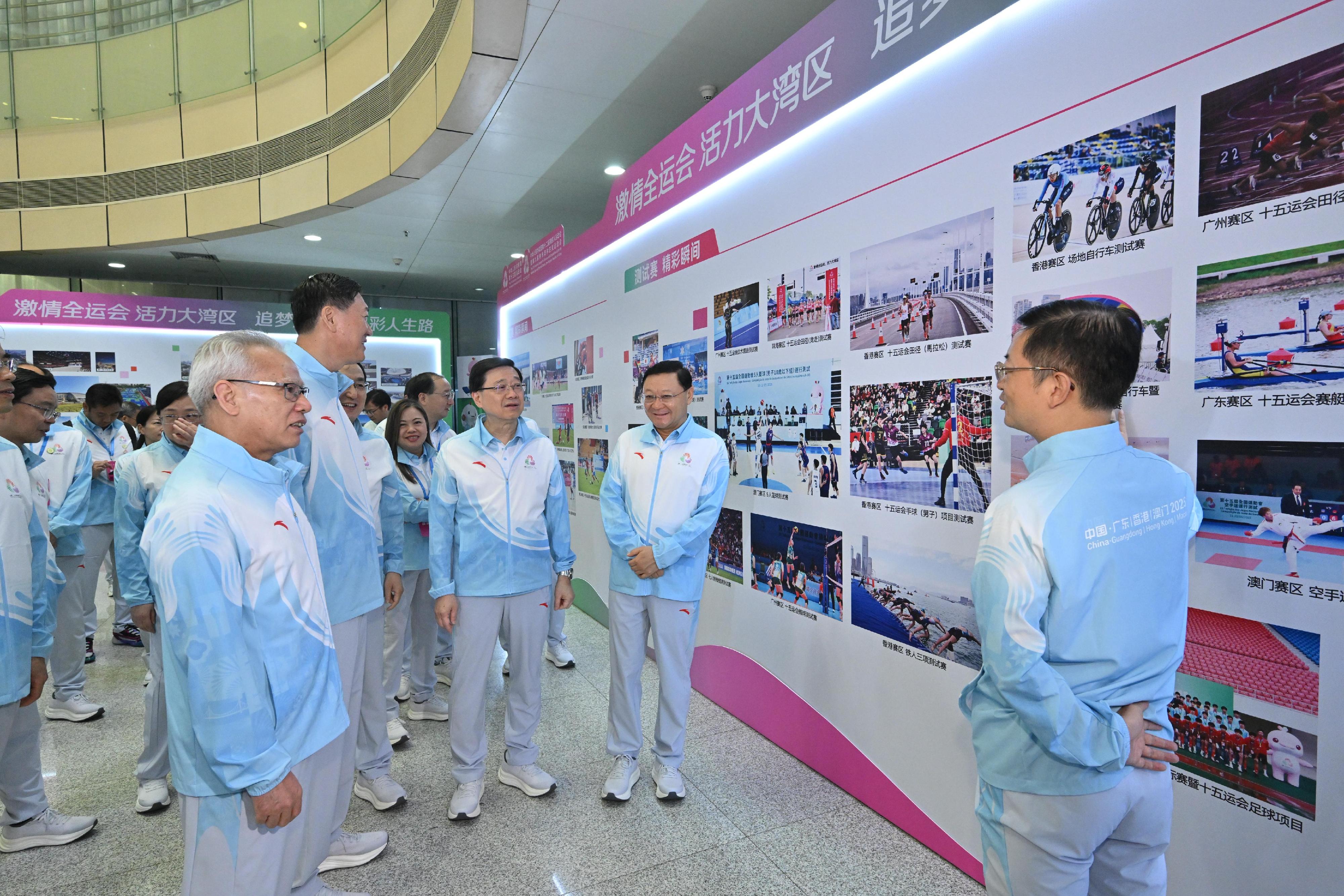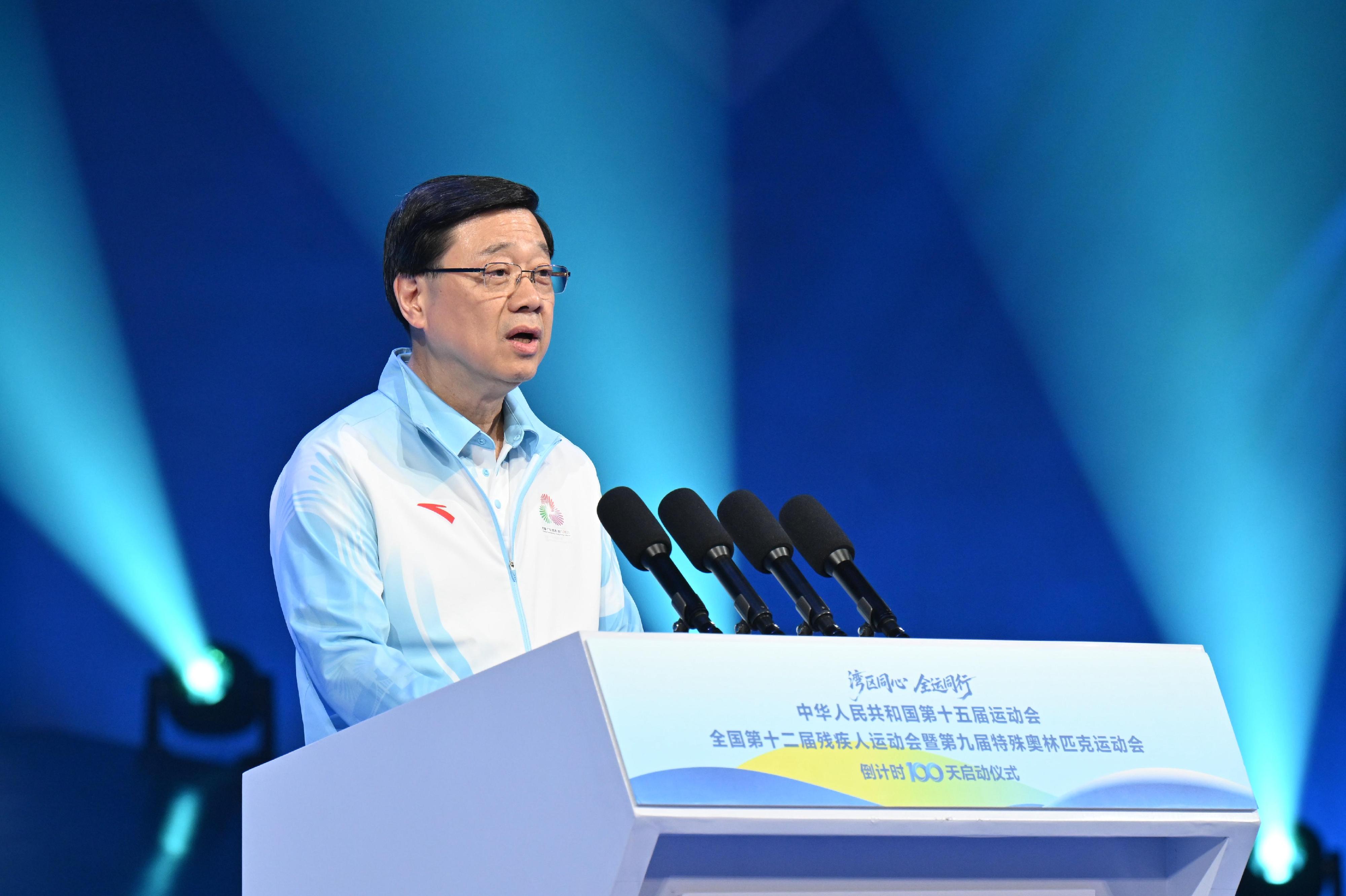 行政長官李家超在活動典禮致辭時表示,十五運會和殘特奧會是國家最高規格的綜合體育盛事。香港可以和廣東、澳門共同承辦這項全國盛事,深感光榮、責任重大。香港賽區接下來將聚焦優化競賽流程、細化服務安排、強化安全保障,做好各個場地和情境的最後測試和演練,為運動員構建公平的競技舞台,為觀眾創造難忘的觀賽體驗。香港將以賽事為紐帶,進一步推動粵港澳大灣區體育產業聯動發展,拓展青少年體育交流,與廣東、澳門同心協力為大灣區體育傳奇譜寫新的篇章。