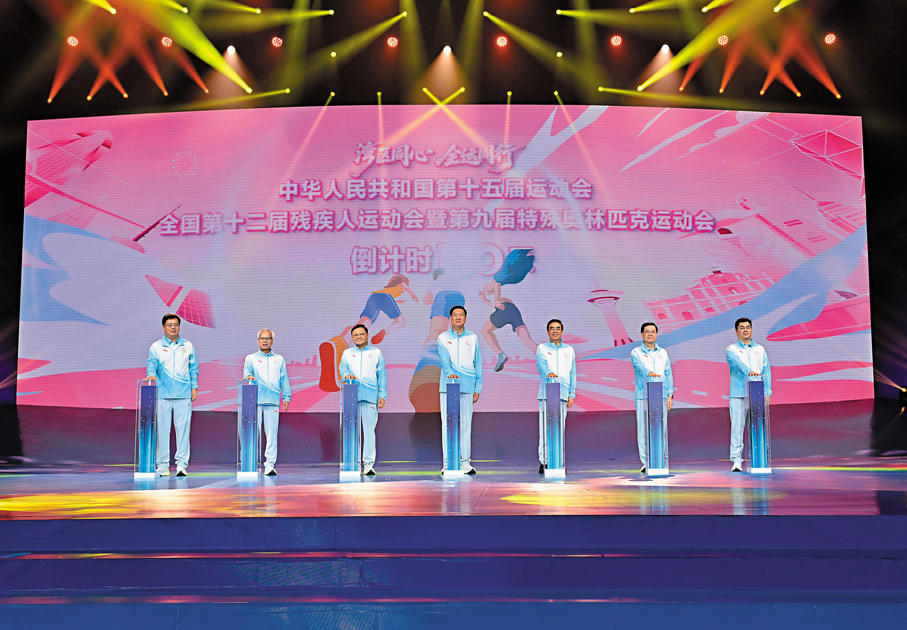 「香港準備好了!」十五運會組委會和殘特奧會組委會執行主任、香港特別行政區行政長官李家超致辭時擲地有聲。當天下午,李家超剛剛參加完香港的百日倒計時活動(詳刊A2),短短時間內,他便能在深圳參加倒計時100天活動。「這正好彰顯了大灣區一小時生活圈的便捷相連,有了大灣區各方力量,我們有信心為全國人民呈現一場精彩的體育盛事!」李家超表示,本屆盛會展現粵港澳大灣區水乳交融、同根同心的團結力量,更彰顯國家對大灣區協同發展的堅定信心。香港特區政府衷心感謝國家的信任和支持,對承辦賽事深感榮幸。香港會全力深化與大灣區各城市的交流合作,為共建一流灣區、為共建國家體育強國貢獻香港力量。