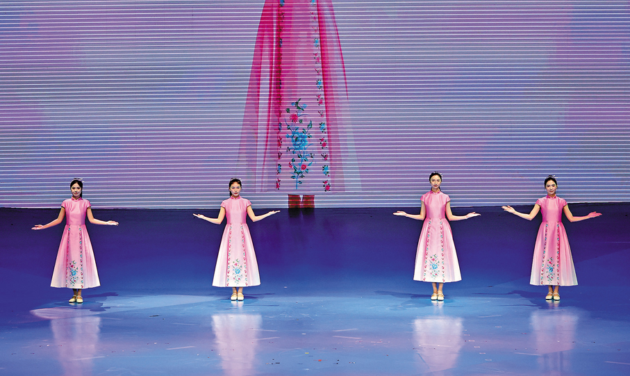 記者看到,這套頒獎禮儀服裝十分協調地融入了灣區特色與體育精神。簡潔大方的裙襬上,牡丹一枝獨秀於其上,「這枝向上延伸的牡丹代表了積極的面貌,也象徵着運動員更高、更快、更強的運動精神。」十五運會和殘特奧會頒獎禮服設計團隊主創負責人、生活在左品牌創始人林棲介紹,設計結合了三藍繡工藝,象徵大灣區三地和諧繁榮、開放包容、生態文明的特色。