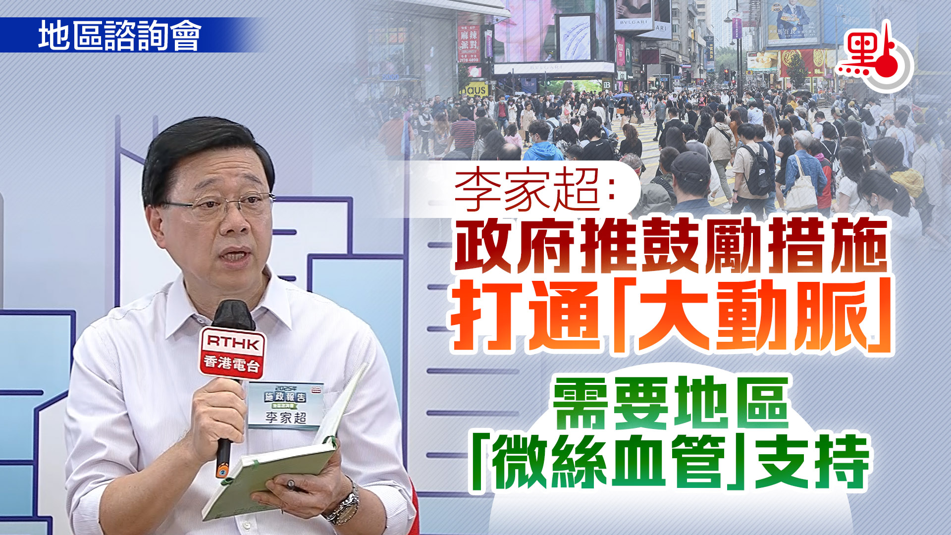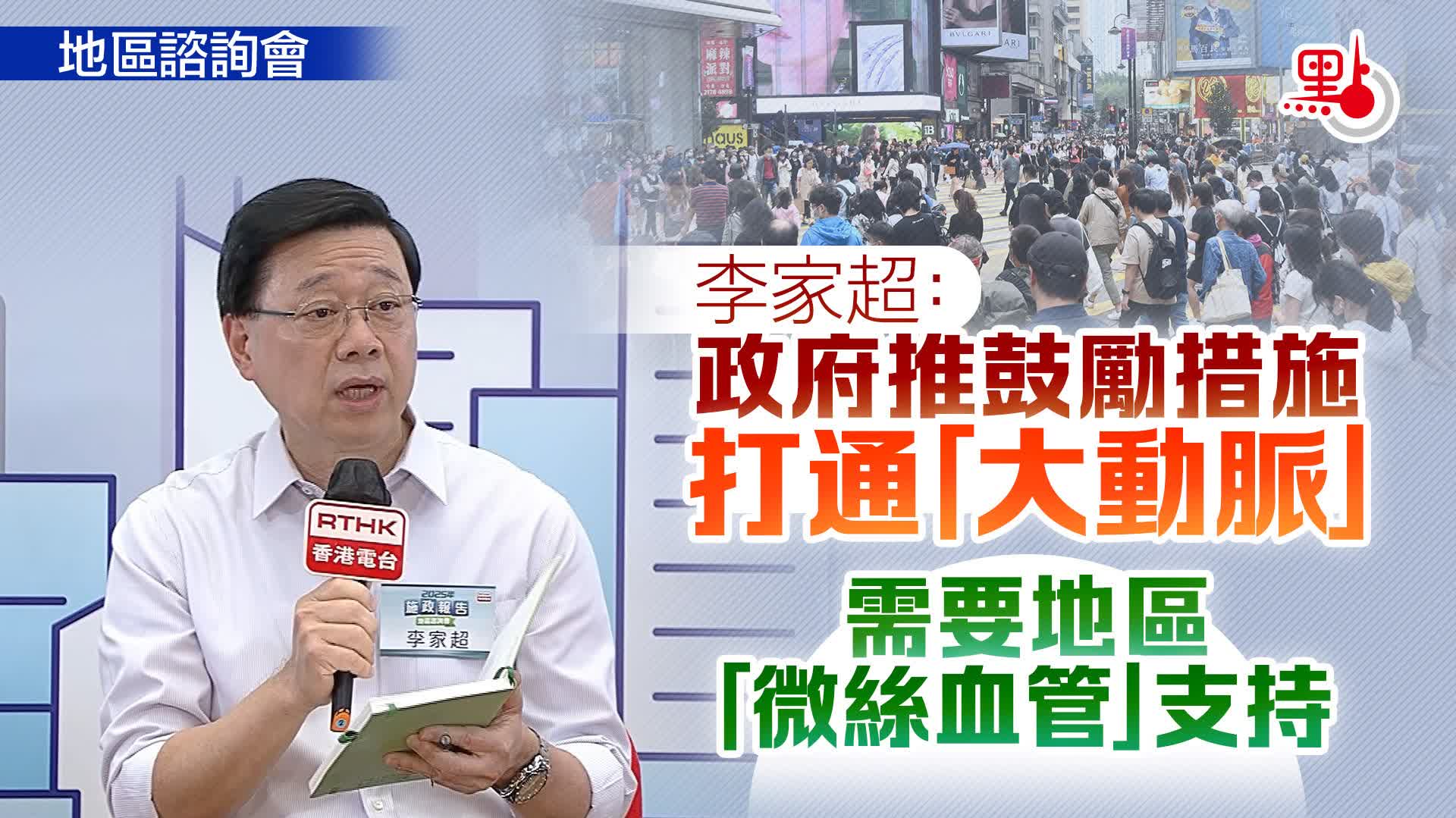 李家超續說,如地區解決到,就地區處理;解決不到,就政務司處理;再解決不到,就交給行政長官處理。他重申,「大動脈」以至「微絲血管」,都需要打通。