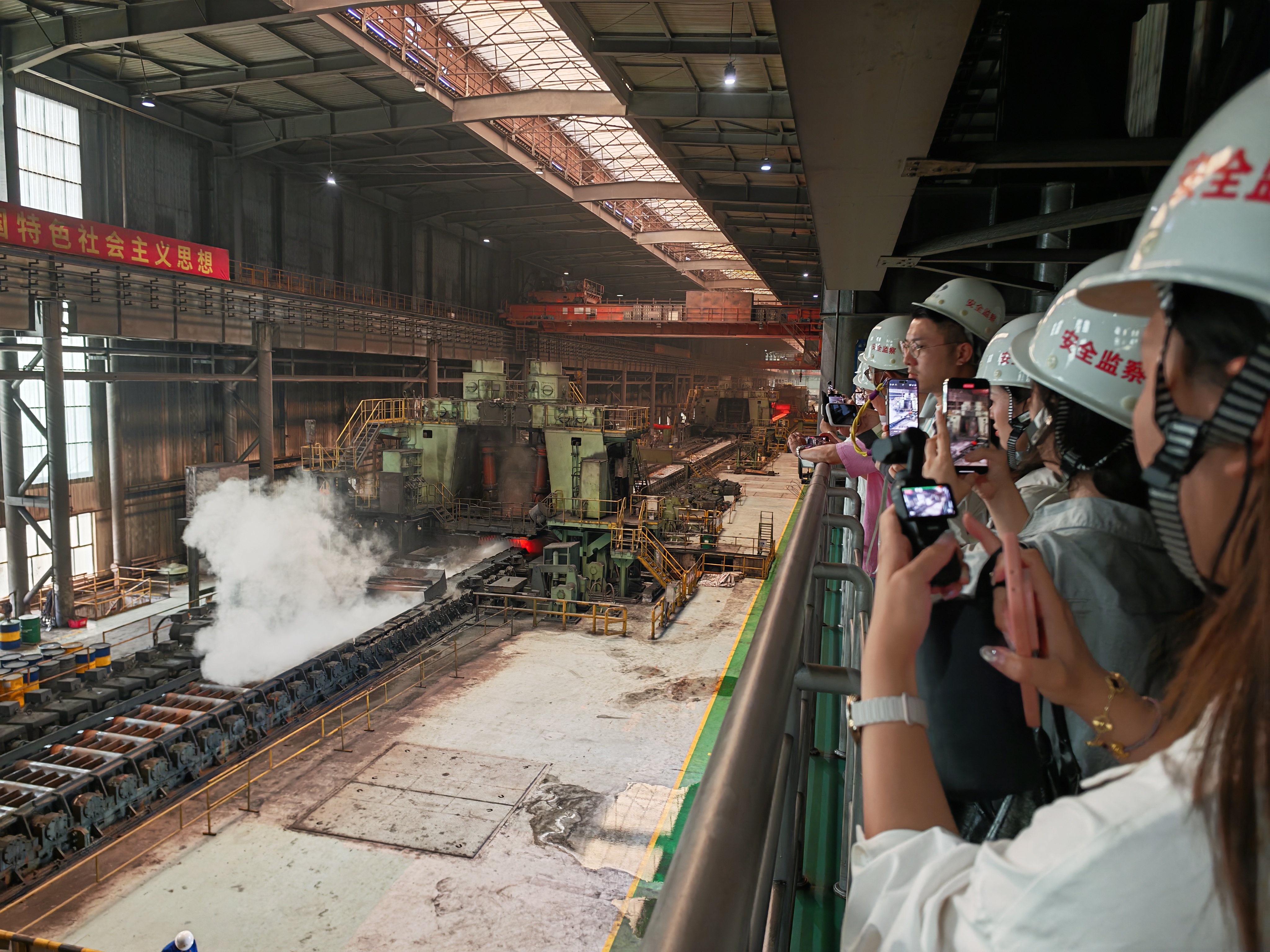 記者們在包鋼稀土鋼板材廠熱軋車間看到,高溫軋機吞吐着通紅的鋼坯,機械臂精準作業,智能顯示屏上數據流實時跳動。「稀土在鋼材裏可不是簡單的添加劑,它就像一把精準的『調控鑰匙』。」熱軋作業部工藝工長王嵩向記者們展示着剛下線的稀土鋼板材,「我們花了三年時間,通過上千次試驗,才把稀土成分控制精度穩定在0.005%以內。」