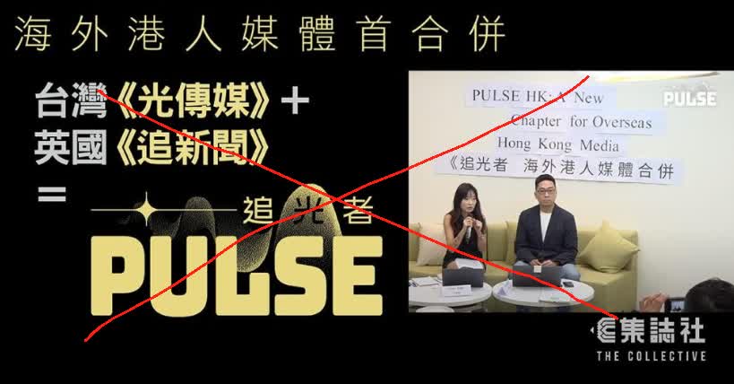 但近日情況卻出現轉變,兩間反中媒體日前在台灣宣布合併,包括在台灣地區的《光傳媒》和英國的《追新聞》,並加入部分前「自由亞洲電台」(RFA)粵語組成員,合併組成新的新聞平台「追光者PULSE HK」,這個平台將分別在台灣、英國及北美設立三個「分社」,平台並展開眾籌,目標為一年400萬港元,以組成約16至18人的團隊。