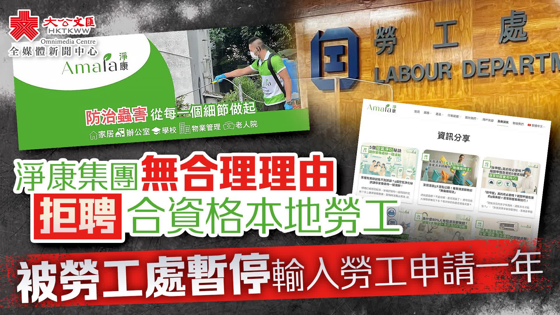 大公文匯全媒體報道,勞工處今日(4日)宣布,對淨康集團有限公司實施行政制裁,由2025年7月31日起拒絕處理該公司在隨後一年就「補充勞工優化計劃」(優化計劃)提交的輸入勞工申請,同時中止處理其已提交的申請。