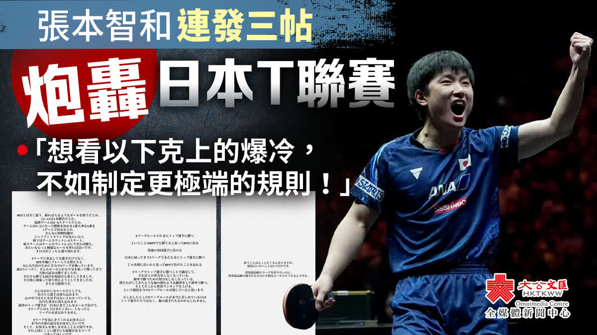 大公文匯全媒體報道,日本乒乓球名將張本智和今日(8月4日)於社交平台連發三帖,公開炮轟日本乒乓球T聯賽規則設計不合理,直指聯賽規則正「摧毀運動員競爭力」並背離「打造世界級聯賽」的初衷。他在文中寫道:「我們想要打造世界上最頂尖的聯賽,為什麼卻要制定對世界上最頂尖選手不利的規則?」