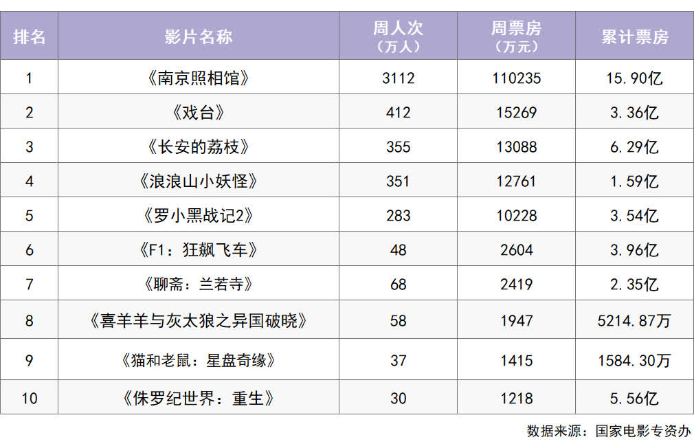 由申奧執導的抗戰題材影片《南京照相館》以單周11億票房產出遙遙領先,穩居票房榜首。據貓眼專業版數據,截至昨日(8月3日)21時57分,2025年暑期檔總票房(含預售)破70億,《南京照相館》《長安的荔枝》《侏羅紀世界:重生》位列暑期檔票房榜三甲。截至今日,位居榜首的《南京照相館》單片票房突破16億元。