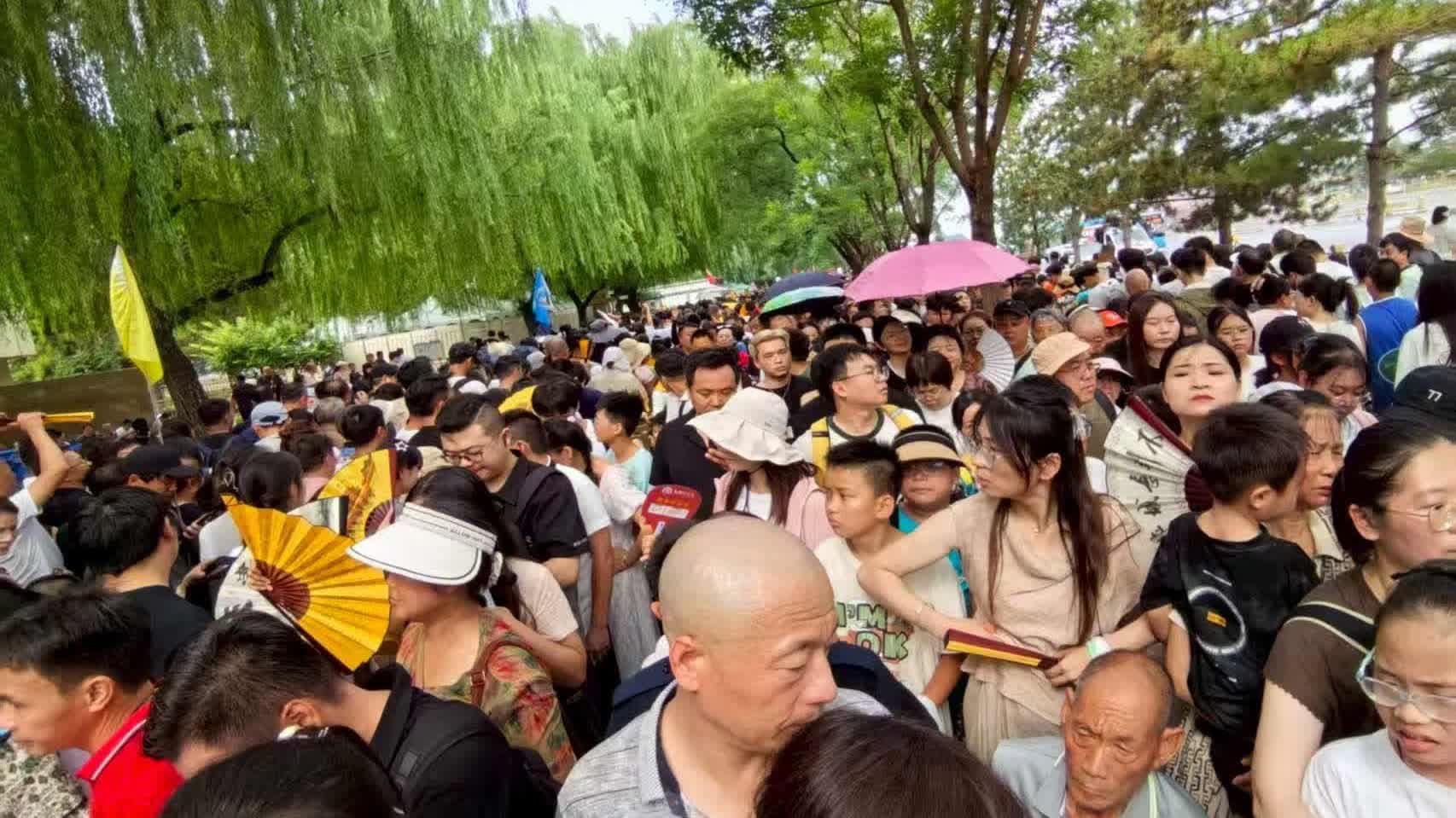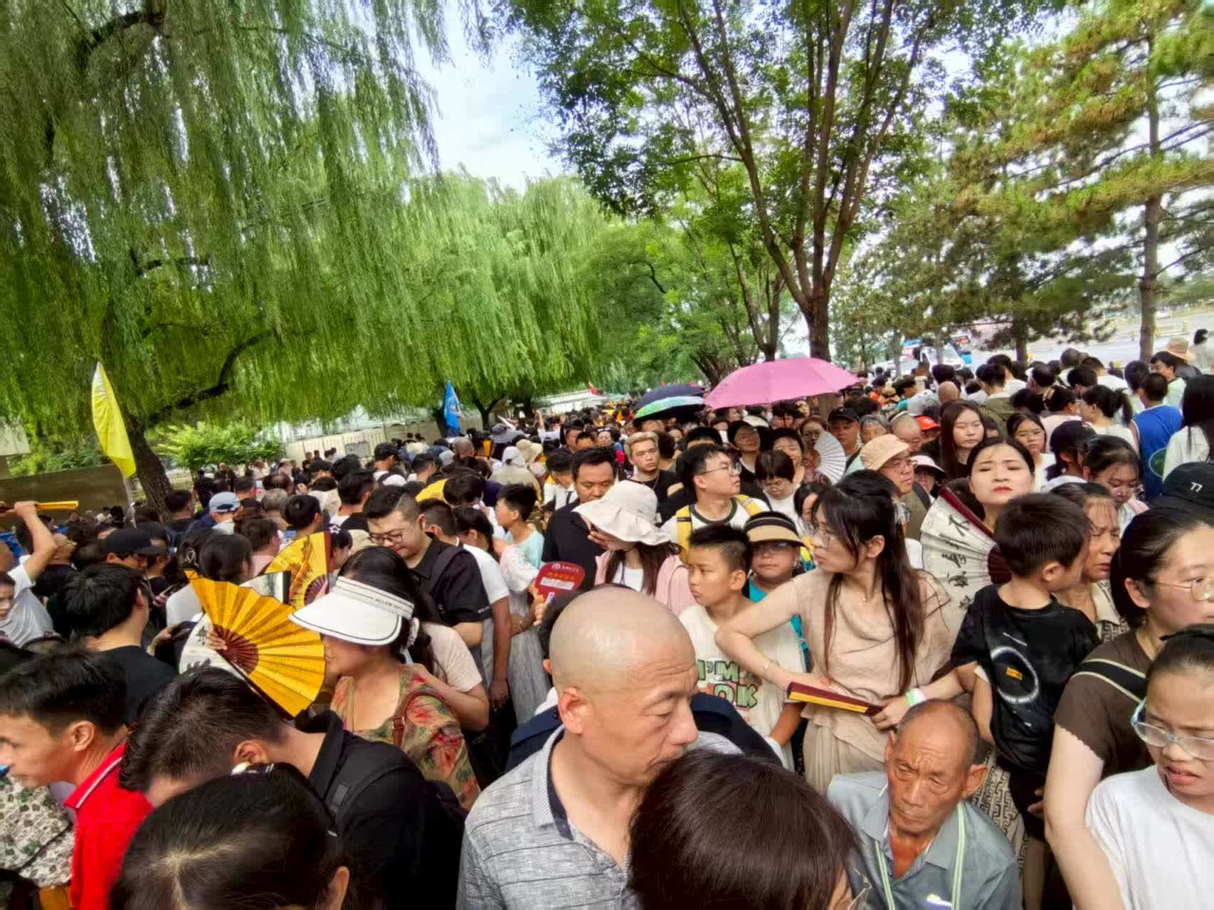 三伏天氣的北京悶熱無比,記者看到不僅有來自中國各省市的遊客,還有很多外國遊客。因為正在暑假期間,隊伍中有很多學生和老年人,大家一面排隊一面利用手頭扇子、帽子等工具降溫,還有不少人打起了遮陽傘。一位來自河北的中學生向家長展示濕透的紙巾,家長笑着告訴她:「這樣汗流浹背的體驗更印象深刻。」面對長龍有不少遊客一邊排隊一邊自拍,感嘆:天安門有「一億人」!