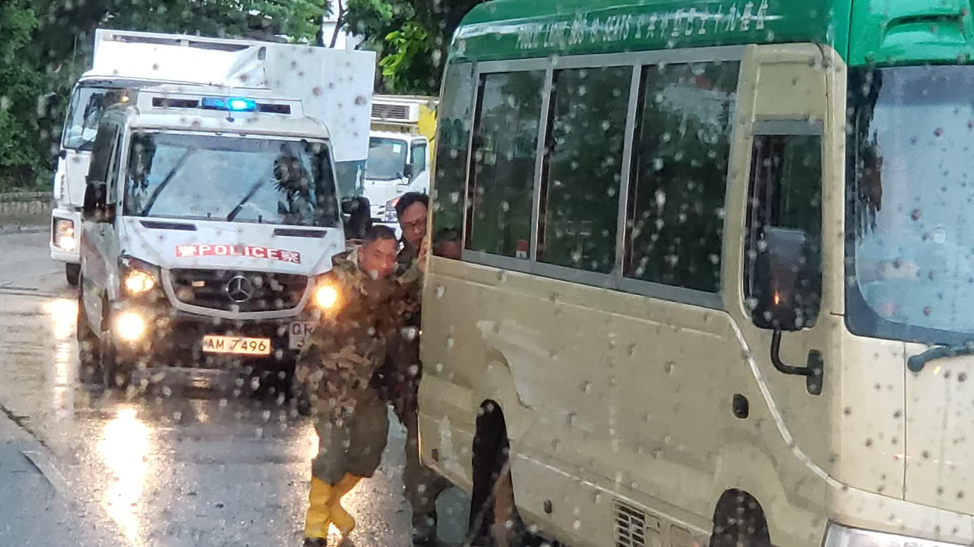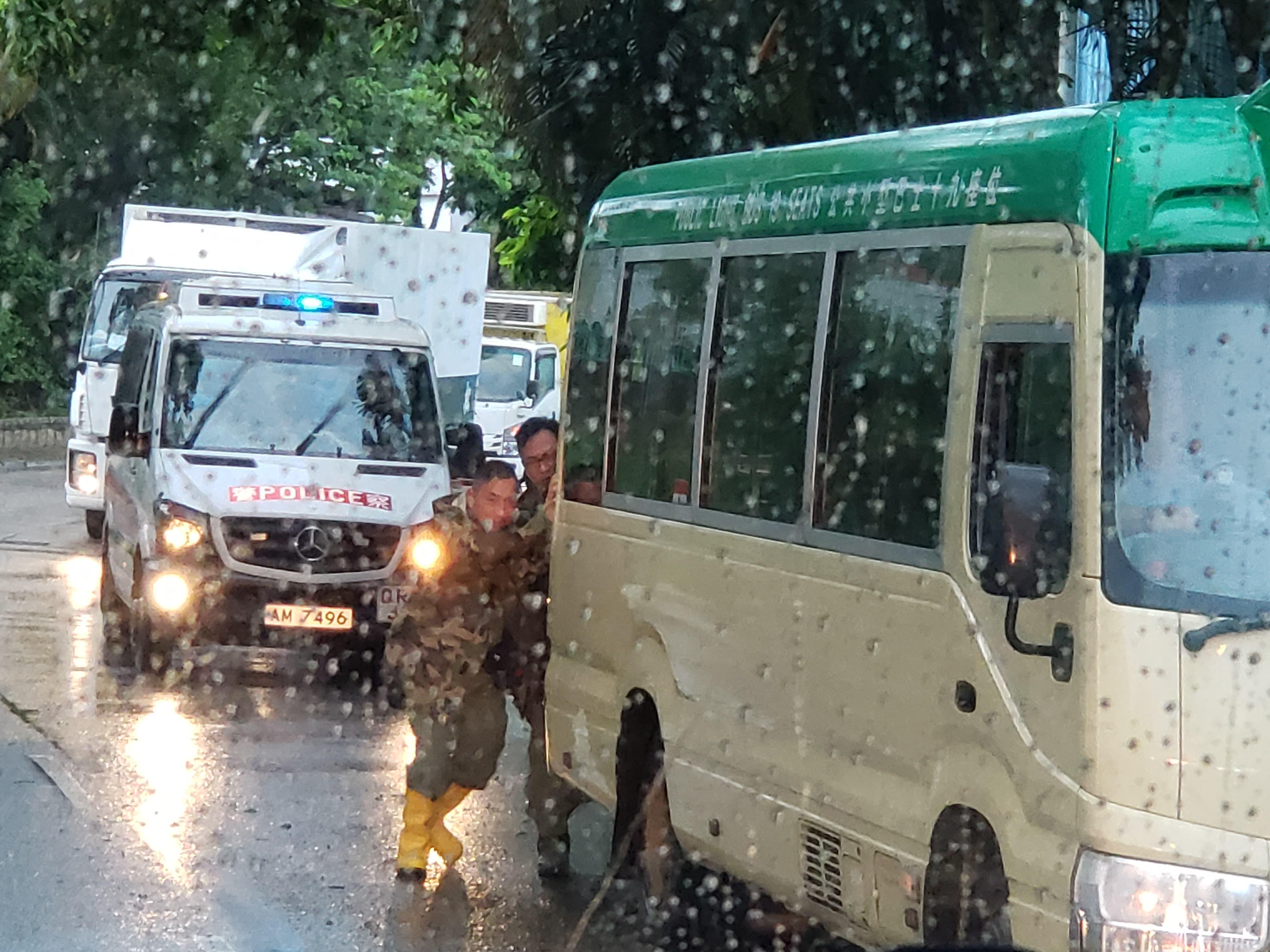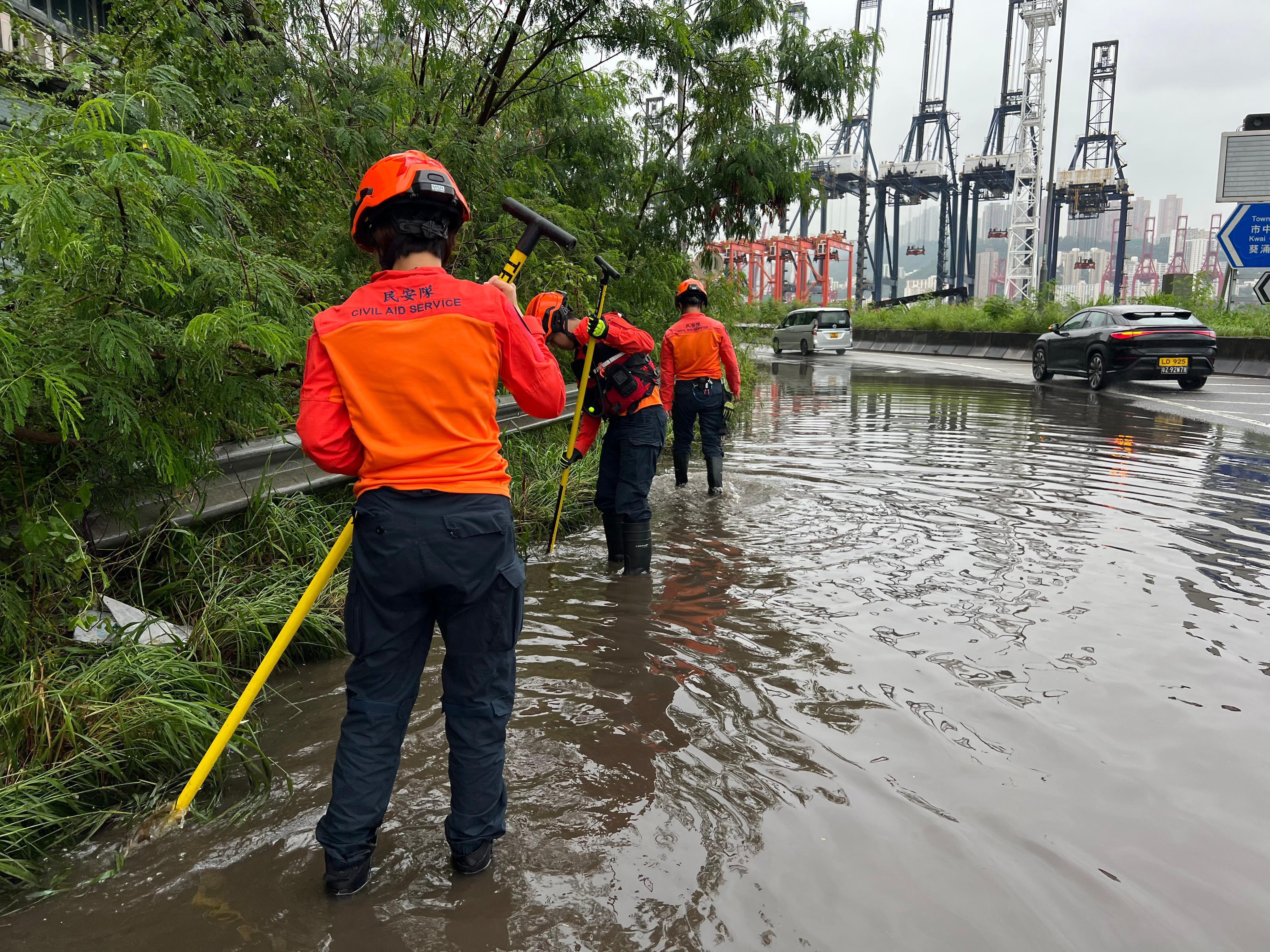 由昨晚起香港持續受到暴雨影響,深夜掛起黑色暴雨警告至今,警隊、消防處和民安隊在狂風暴雨之中,到不同地區全力協助,無懼風雨維持道路暢通,清理水浸位置,救出因水浸受困的居民,盡力應對惡劣天氣期間發生的緊急事故。現時香港多處陸續出現水浸,大家記得遵從天文台的指示,保持高度戒備,遠離河道,留在安全地方,採取適當預防措施,減少大雨和水浸帶來的風險。