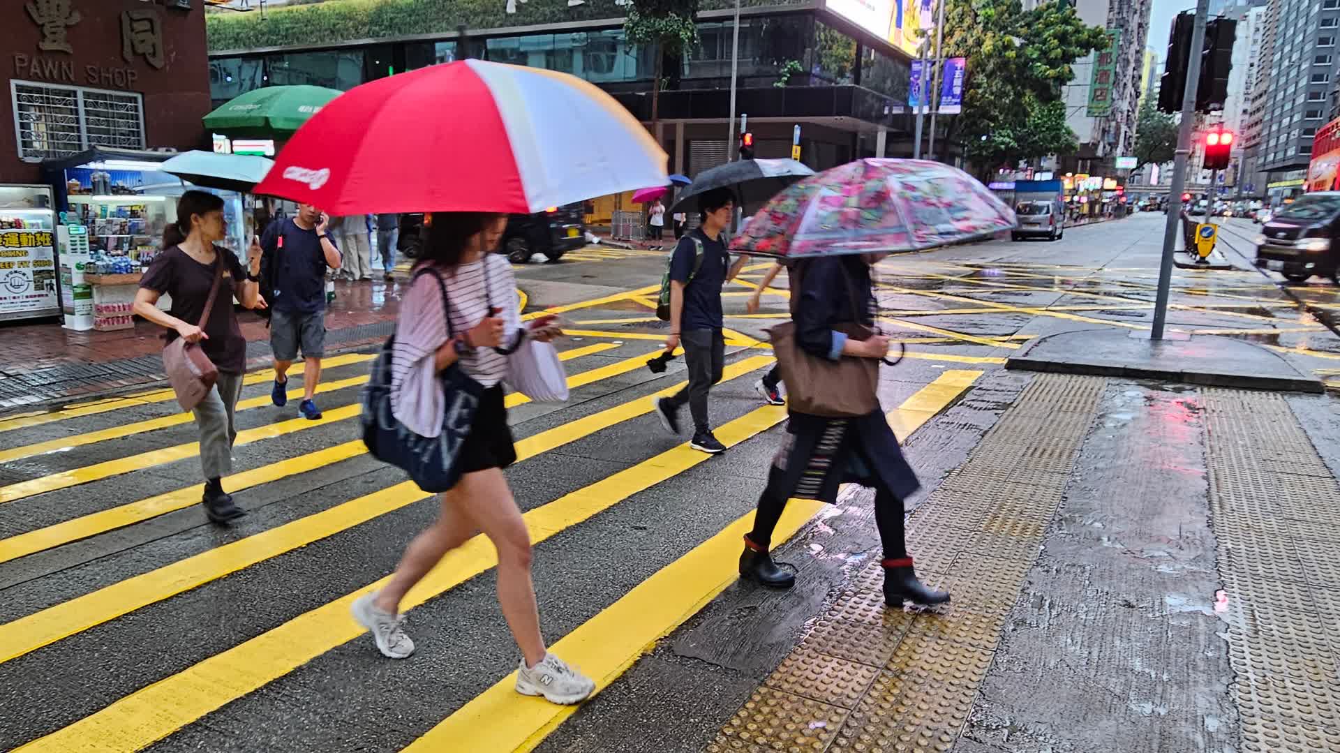 天文台昨日起接連多次發出黃、紅色再轉黑色暴雨警告信號,其中昨晚至今日(5日),更是6小時內兩度發出黑雨警告,在8日之內四度發黑雨,破一年內最多黑雨次數紀錄。本港今日多處現水浸、山泥傾瀉,路上行人需涉水而行,甚至攀爬防撞欄避水。