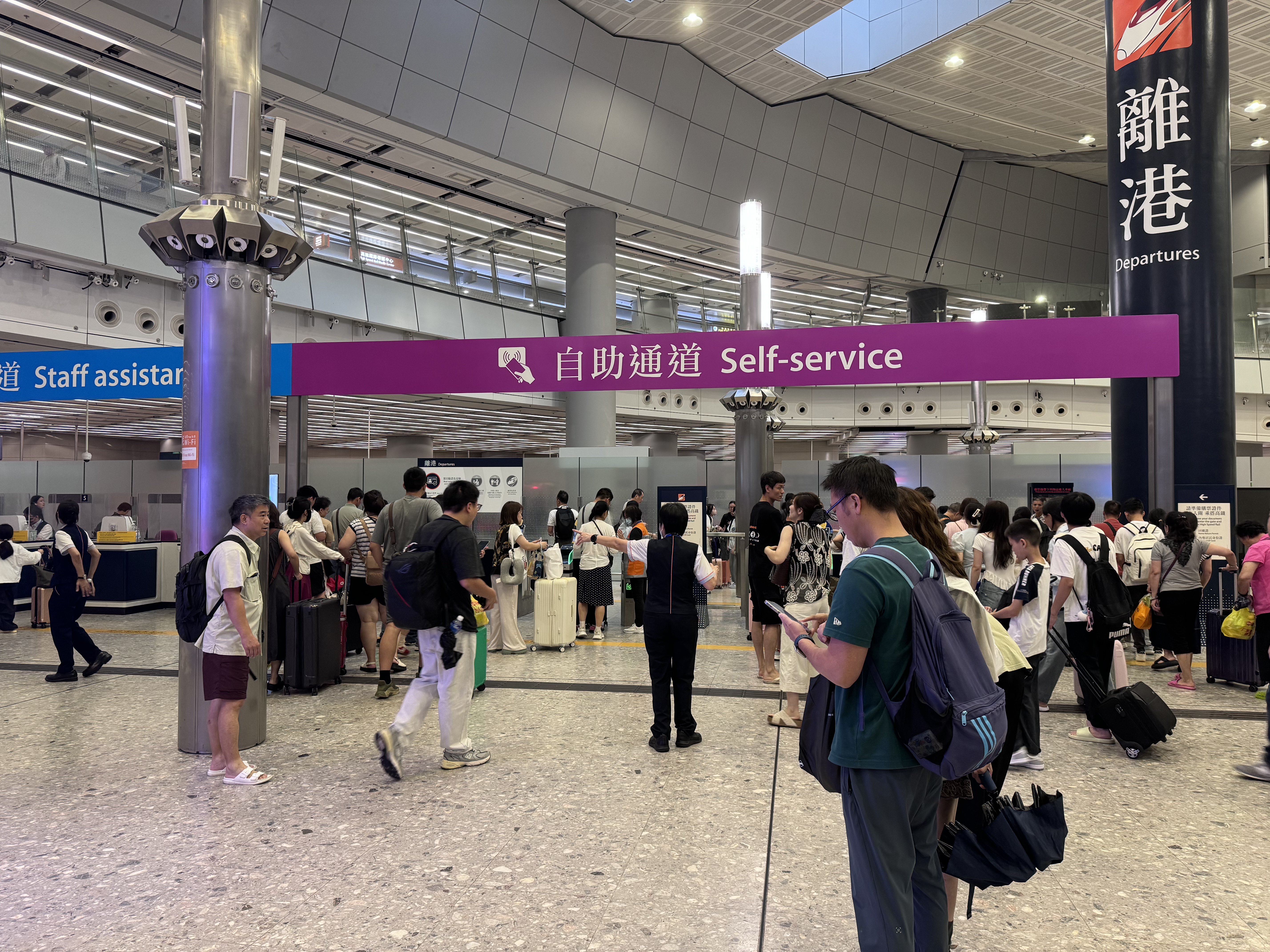 香港市民陳小姐表示,「今日帶着小朋友坐高鐵出去玩,一路坐地鐵來高鐵站沒有受暴雨影響,亦沒有收到通知說高鐵會有延誤或取消。」