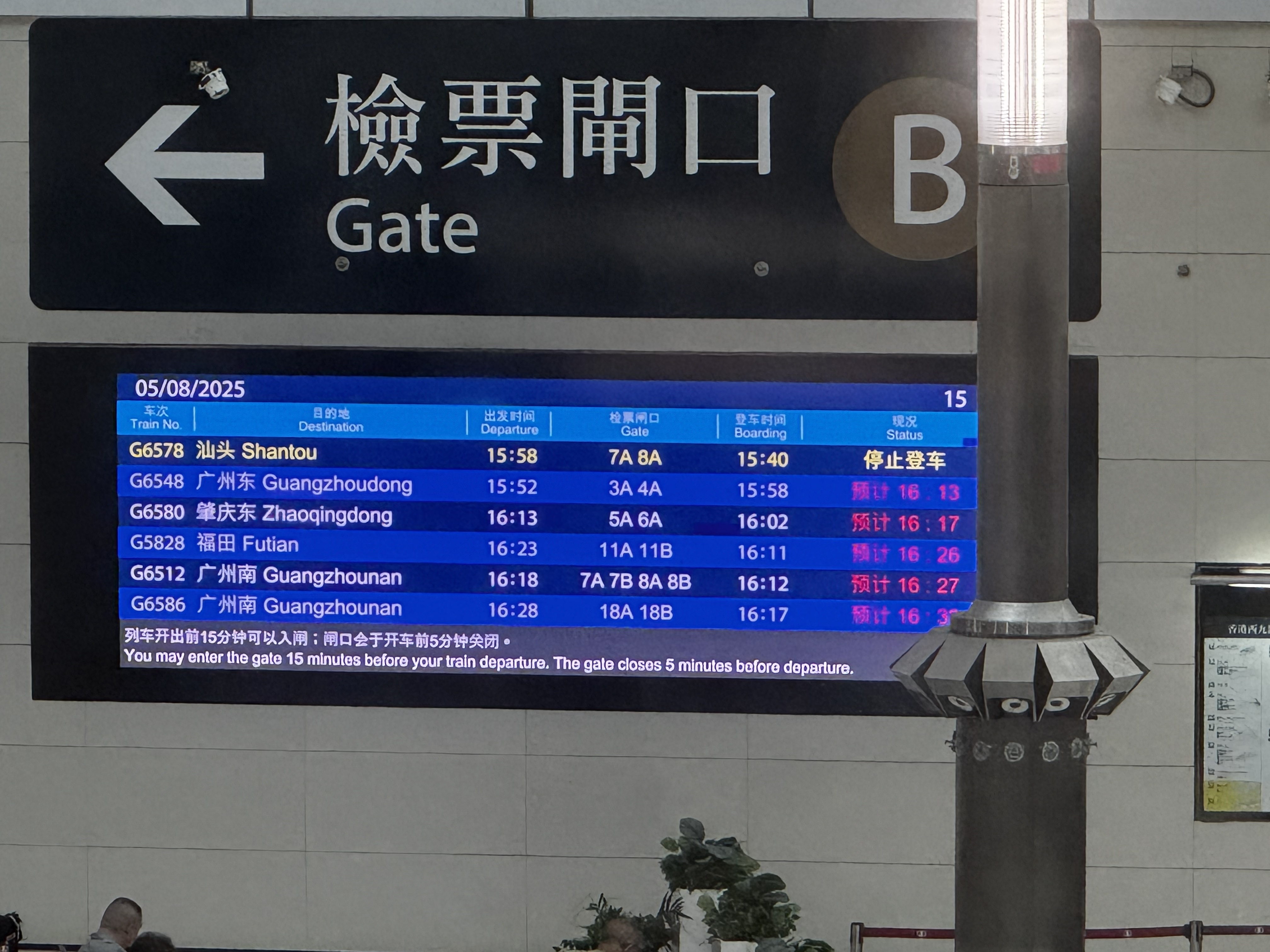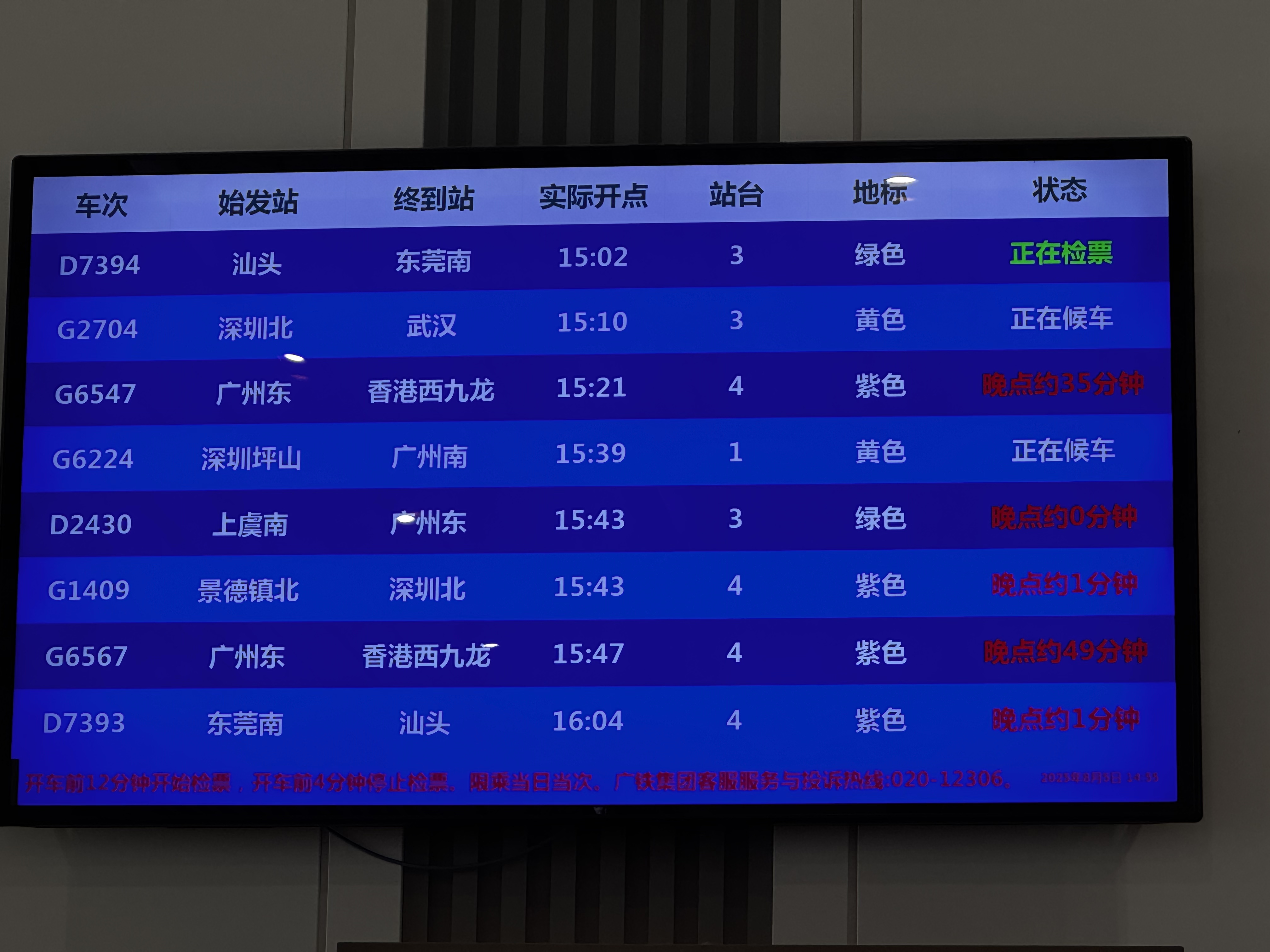 另外,在高鐵出發層可見到,部分列車延誤。另據讀者供圖,亦有內地開往香港西九龍列車晚點,市民或旅客出發需提前了解車次最新情況。