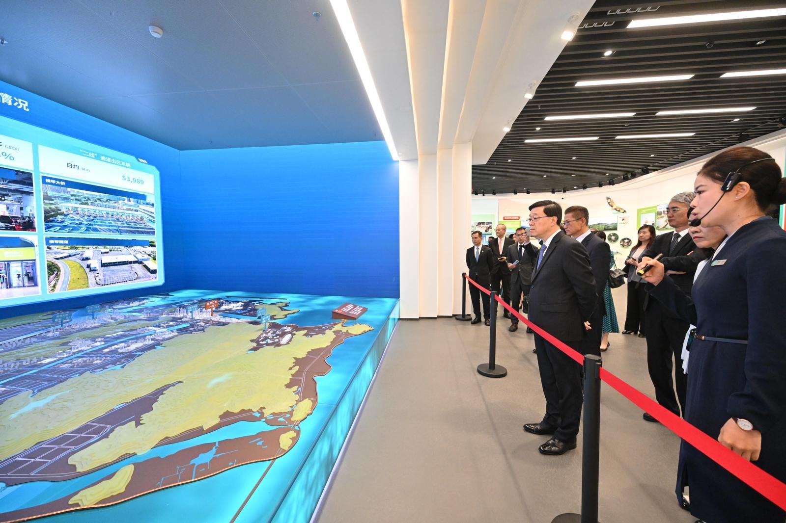 李家超一行亦到訪橫琴粵澳深度合作區。他們先參觀粵澳合作中醫藥科技產業園中醫藥文化體驗館,了解當地把中醫藥與文旅產業融合發展情況;隨後到訪橫琴粵澳深度合作區規劃展覽館,館內有逾600多項關於新產品、新技術的展項,李家超和在場官員討論交流合作區的管理、建設、發展模式和成果。
