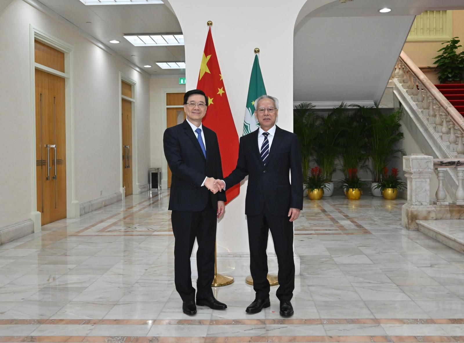 李家超與岑浩輝行政長官會面,就推動香港和澳門多方面合作和粵港澳大灣區高質量發展作深入交流。李家超表示,很高興繼較早前岑浩輝行政長官率團訪港後,再次會面。他表示,建設橫琴粵澳深度合作區是豐富「一國兩制」實踐的重大部署,有利於澳門長期繁榮穩定和融入國家發展大局。香港和澳門皆為國家的特別行政區,同享「一國兩制」的獨特優勢,港澳地緣相近,人文交流頻繁,經貿往來密切,在經濟、跨境基建、旅遊和文化等領域一直合作無間。