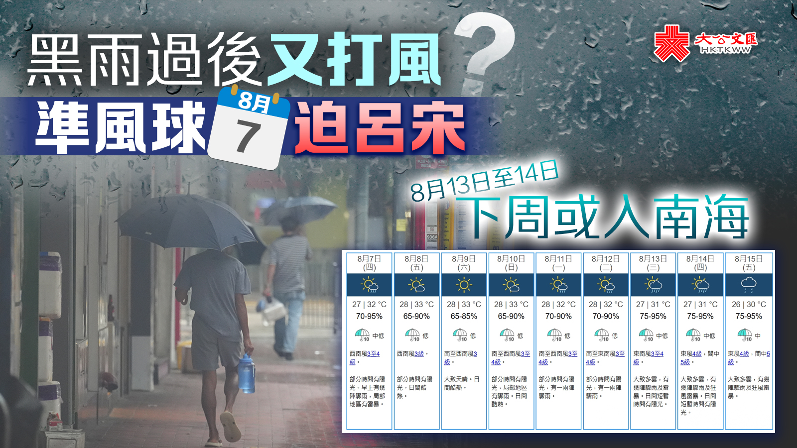 據報道,現時不同天氣預測模式分歧較大,其中被天文台「點名」一周前預測是次黑雨的人工智能電腦模式「風烏」,則預計該低壓區會在本周後期在菲律賓以東一帶形成,到下周橫過呂宋移入南海,並於下周三至周四(8月13日至14日)於香港南面掠過。