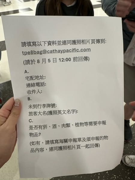 網民續稱,沒想到班機抵台後,所有旅客在行李轉盤卻等不到行李,才得知全數行李都滯留日本,現場一片錯愕,旅客紛紛抱怨,「我的證件在行李箱裏」,「家鑰匙放裏面」,「我買的生鮮,要臭掉了」,「我準備的禮物,完蛋了」。