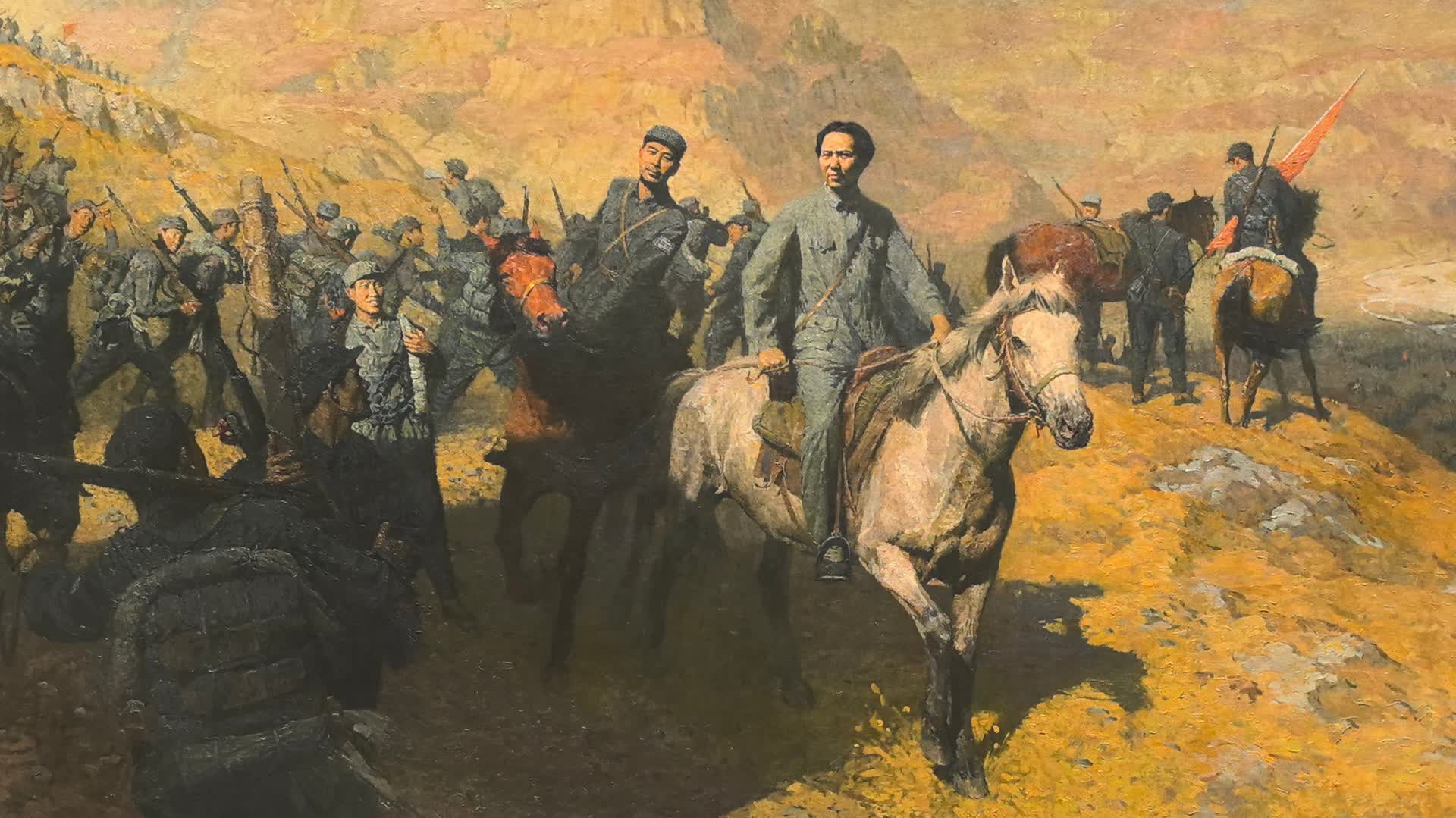 記者在現場看到,這次展覽難得呈現了諸多不同風格的毛澤東畫像。特別是第一板塊,集中呈現了1949年之前的毛澤東形象和重要事跡。其中,還有不少我們耳熟能詳的名家作品:靳尚誼、湯沐黎、沈堯伊等等。同時,很多表現毛澤東所領導的共產黨革命歷史的主題創作帶領觀眾更直觀學習國情和歷史知識:南昌起義、向井岡山進軍、紅軍過夾金山、長征路上,勝利渡長江等,青少年觀眾欣賞之餘,亦能更切身體會到今日的幸福生活來之不易。