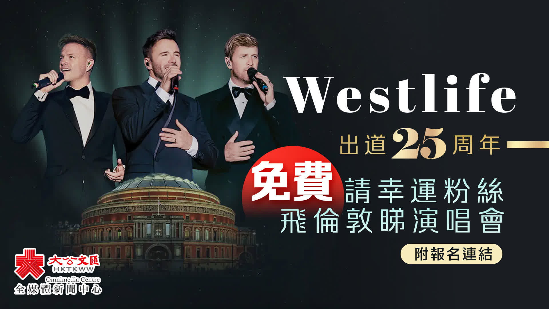 大公文匯全媒體報道,Westlife於90年代出道即紅遍全球,為了慶祝出道25年,Westlife將為香港粉絲提供千載難逢的機會,邀請粉絲於今年10月飛往倫敦,在Royal Albert Hall參加他們的25周年紀念演唱會。
