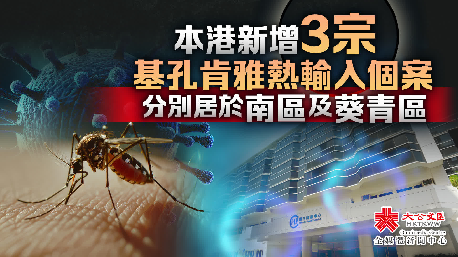 大公文匯全媒體報道,衞生署衞生防護中心今日(6日)表示,中心截至今日下午5時,錄得3宗新增感染基孔肯雅熱個案,全部為輸入個案。