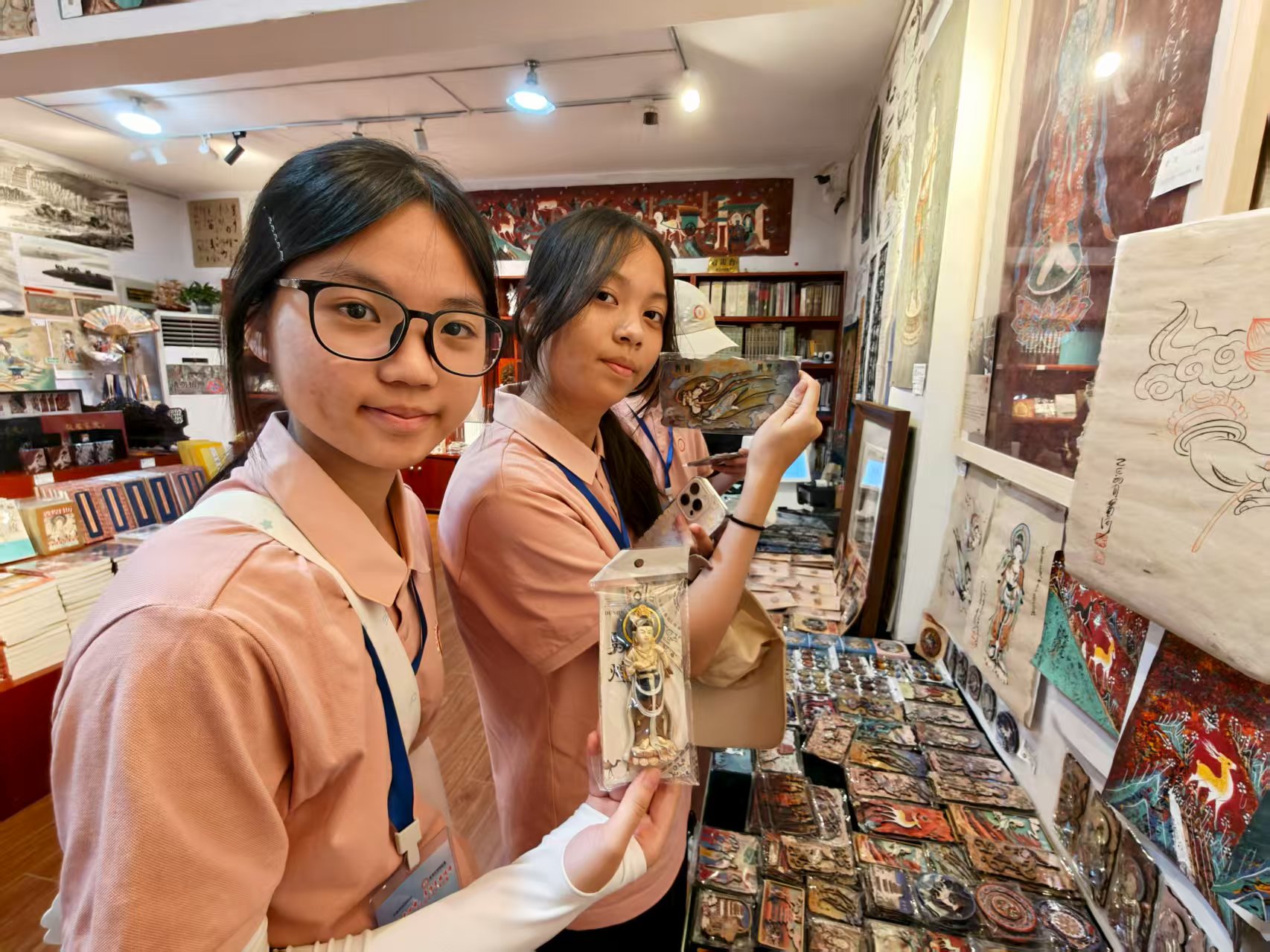 李紫琦告訴記者,莫高窟的壁畫和雕塑背後蘊含的豐富寓意,完全超出了她的預期。在她看來,每一幅畫作、每一處細節都藏着故事,彷彿從人物的神情中能窺見歷史片段,「這種藝術的靈動太神奇了」。鄧書涵則對比了線上了解與實地參觀的差異:「以前在網上、課本裏看過莫高窟的壁畫和雕塑,沒什麼特別的感覺,可站在這裏,那種震撼是發自內心的。」講解員的生動講解讓她對莫高窟有了更深的認識,「這趟旅行太有價值了」。
