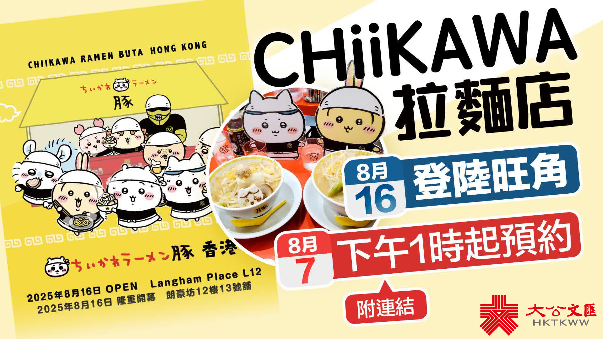 大公文匯全媒體記者報道,日本人氣漫畫角色CHIIKAWA的主題拉麵店「吉伊卡哇拉麵」首間海外分店將於8月16日在旺角朗豪坊開幕,今日(7日)下午1時於KKDAY開放首一個月(8月16日至9月15日)的預約名額。作為狂熱粉絲,大公文匯全媒體記者當然不會錯過這個絕佳機會,決定在第一時間搶先體驗,立即加入了「搶票大軍」!
