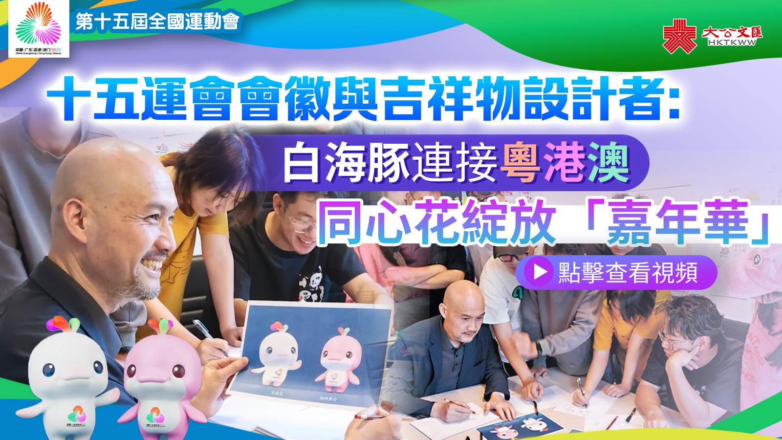 2024年11月9日,十五運會和殘特奧會的主題口號、會徽和吉祥物正式揭曉,十五運會和殘特奧會吉祥物以國家一級保護野生動物、「海上國寶」中華白海豚為原型。吉祥物形象公布後很快便得到社會大眾的認可,時常在珠江口、港珠澳大橋附近海域游弋現身的白海豚,顯然在每一個大灣區人的心中都留下了美好的印象。