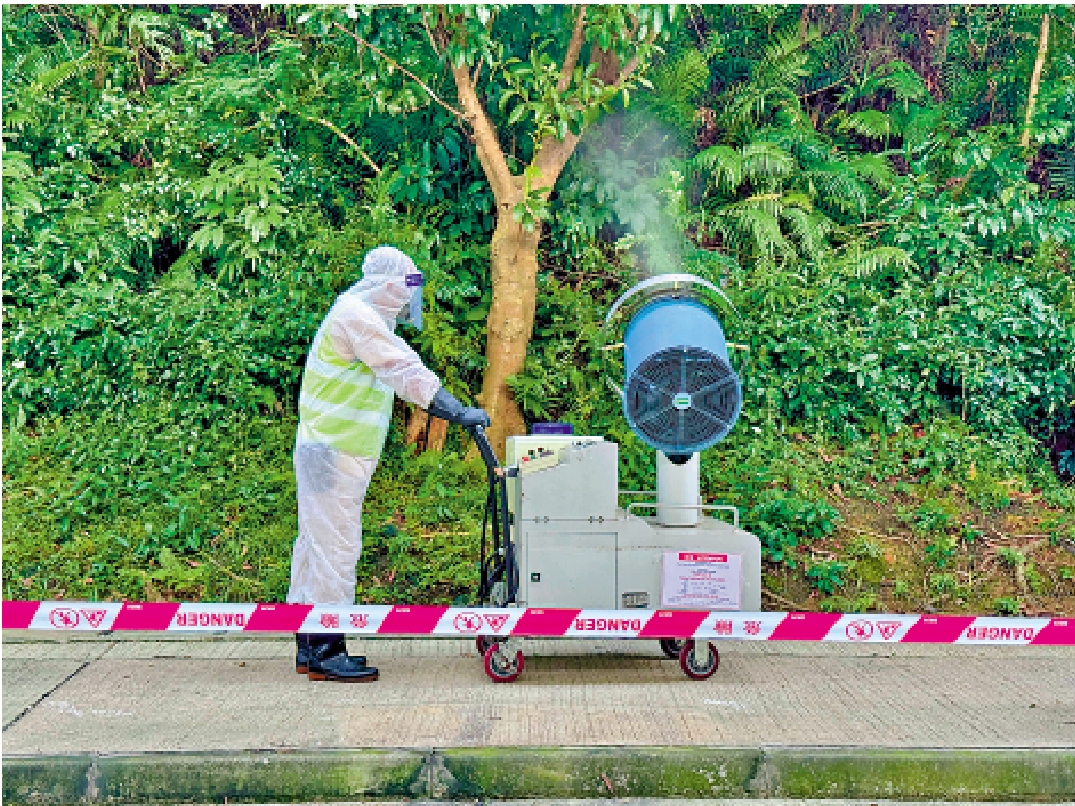 食環署昨日早上聯同房屋署、區議員、關愛隊、物業管理公司等舉辦衞生講座,解答居民提問。食環署承辦商人員昨早亦在利東邨一帶,使用霧化設備滅蚊,清潔工分隊清理渠道積水,在花叢噴灑滅蚊劑。關愛隊向街坊派發驅蚊貼。