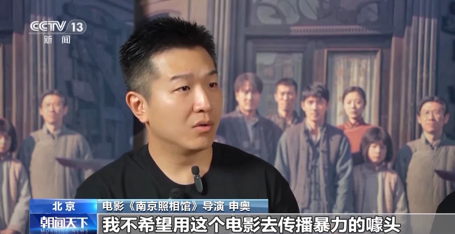 電影《南京照相館》導演 申奧:我不希望用這個電影去傳播暴力的噱頭、去傳播仇恨的種子,而是希望觀眾更多的立足於當下,去展望和平,珍惜現在的生活,去提醒他們銘記歷史、珍惜和平,吾輩自強。