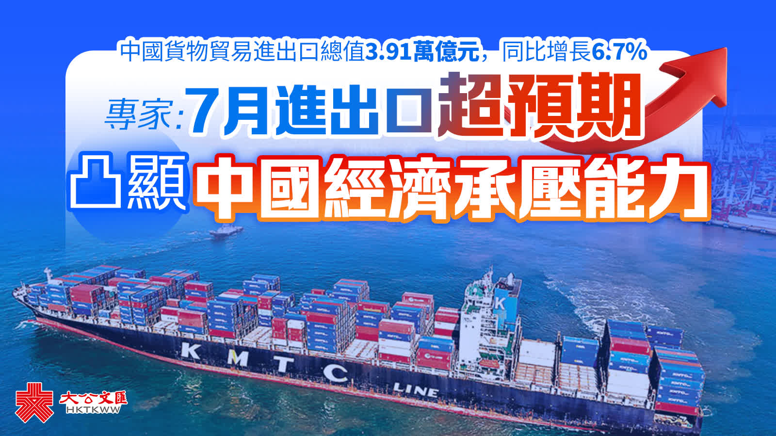 (大公文匯網記者 朱燁 北京報道)8月7日,海關總署數據顯示,7月當月,中國貨物貿易進出口總值3.91萬億元(人民幣,下同),同比增長6.7%,創年內新高。前7月中國貨物貿易進出口總值25.7萬億元,同比增長3.5%,增速較上半年加快0.6個百分點。大灣區內地9市進出口5.2萬億元,增長4.7%。海關總署統計分析司司長呂大良表示,今年以來,中國經濟運行穩中有進,面對複雜外部環境,外貿運行保持向上向好勢頭。