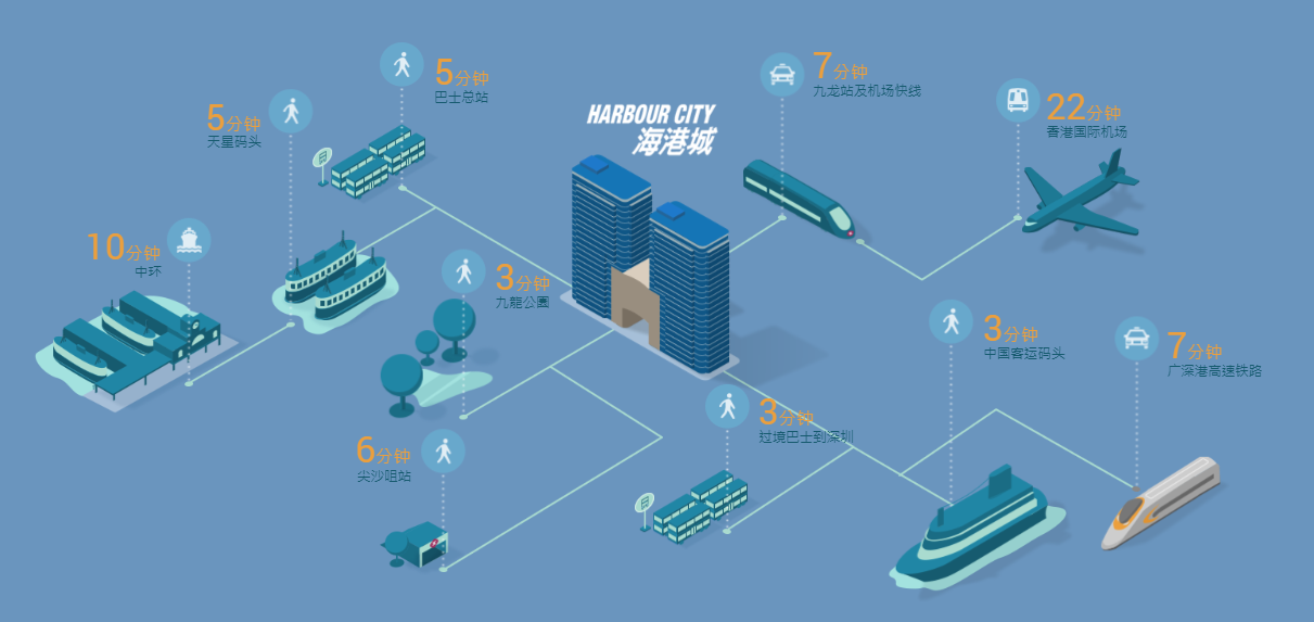 海港城緊密連接完善的交通網絡,乘坐港鐵、巴士或小輪均可以輕鬆抵達。