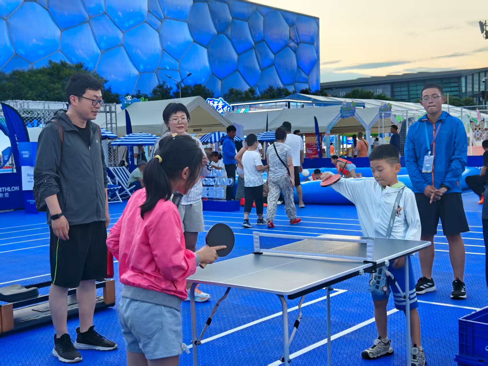 (大公文匯網 記者 馬曉芳 北京報道)2008年8月8日,第29屆夏季奧林匹克運動會在北京開幕,火熱的奧運時光距今已經17年。第十六屆北京奧運城市體育文化節暨第六屆「8·8」北京體育消費節開幕式7日晚在北京奧運博物館雙奧庭院舉行。北京市副市長、北京奧運城市發展促進會會長司馬紅出席開幕式。國際奧委會主席柯絲蒂·考文垂發來賀信,北京市政協黨組成員、市文聯主席、奧促會常務副會長韓子榮出席開幕式並致辭。夏日微風中,昔日的北京奧運賽場人氣不減,現場融合摩斯密碼「Olympic」元素的沉浸式文化景觀,與鳥巢、水立方等奧運地標交相輝映,共同激活人們對北京「雙奧之城」的集體記憶。