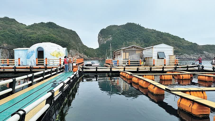 而魚排上的先進重力網箱,亦降低了養殖瀕危魚種的難度。漁民老李已經在這座海上牧場工作了三年。「這邊日曬雨淋都習慣了,床不搖都睡不慣!」他笑說,相較傳統魚排,海洋牧場用的是重力式網箱進行養育,結構更穩固、材料更先進,抗風浪性能更強,「魚苗的存活率大大提升,我們的活兒也更輕鬆。」香港文匯報記者了解到,新型的可升降重力式網箱讓漁民不必再在颱風天提心吊膽,而以前的網箱沒有辦法全部沉入水下,常常傾斜或者側翻,現在深海網箱可以抵禦更強颱風。