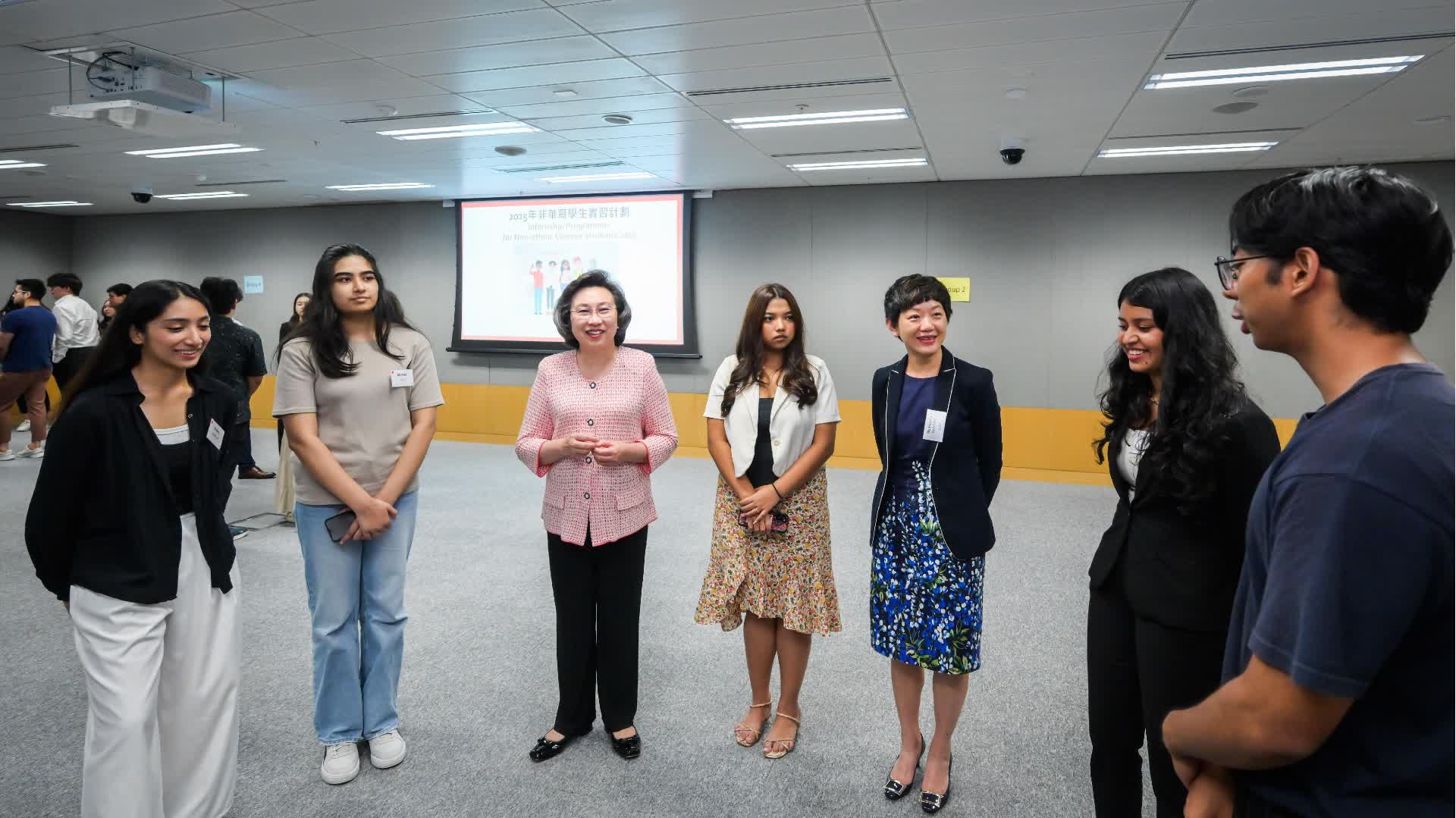 楊何蓓茵說,實習計劃至今有逾220名非華裔大專學生參與,包括今年的44名非華裔學生,他們獲安排到不同決策局和部門進行為期約8周的實習。今年,局方還特別邀請了兩位非華裔公務員,分別是政務主任馬仕高和行政主任古狄雅現身說法,與實習生分享他們投考公務員的心得和準備工作,以及日常工作的見聞,讓在場的實習生可以獲取第一手資訊。
