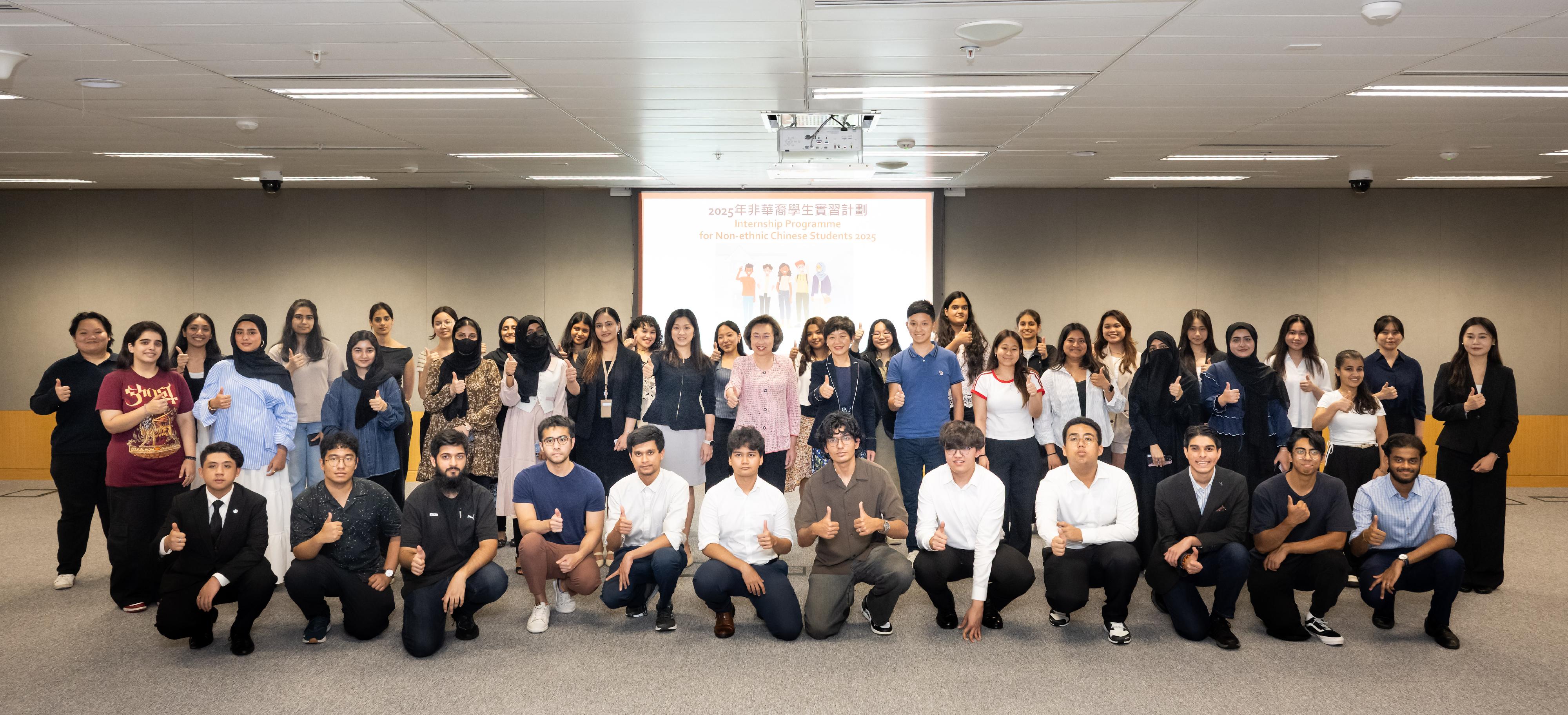 楊何蓓茵欣悉同學們透過在不同政策局和部門實習,對公務員工作有更深入認識。她表示,政府十分重視吸引不同背景的人才加入公務員團隊,建立多元人才庫,提升公共服務的質素和效率。政府招聘時會按申請人的能力、表現和品格進行評核,種族從來不是考慮因素。