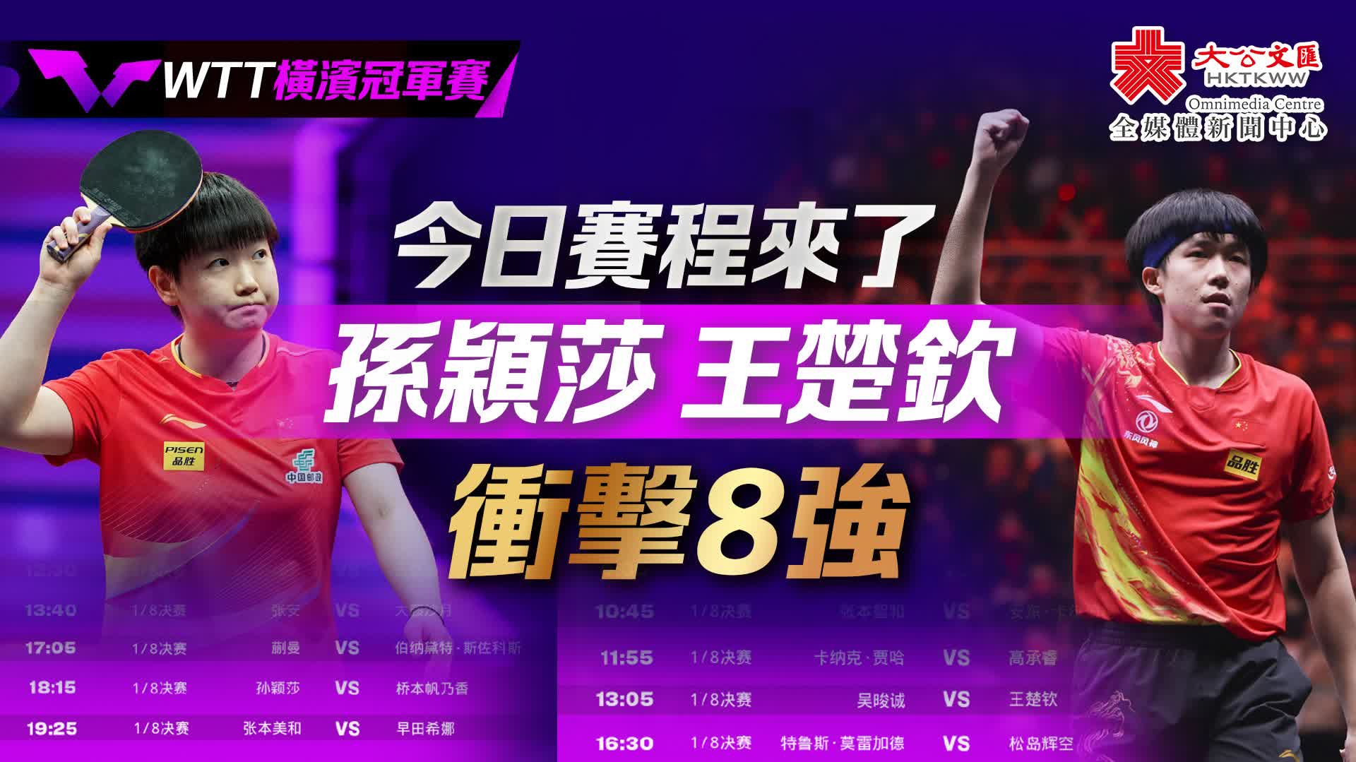 大公文匯網報道,WTT橫濱冠軍賽2025今天(9日)進入第三個比賽日。在昨天的比賽中,國乒選手孫穎莎、王曼昱、陳幸同、向鵬晉級16強,今天,孫穎莎、王曼昱、林詩棟、王楚欽等將陸續出戰,向1/8決賽發起衝擊。