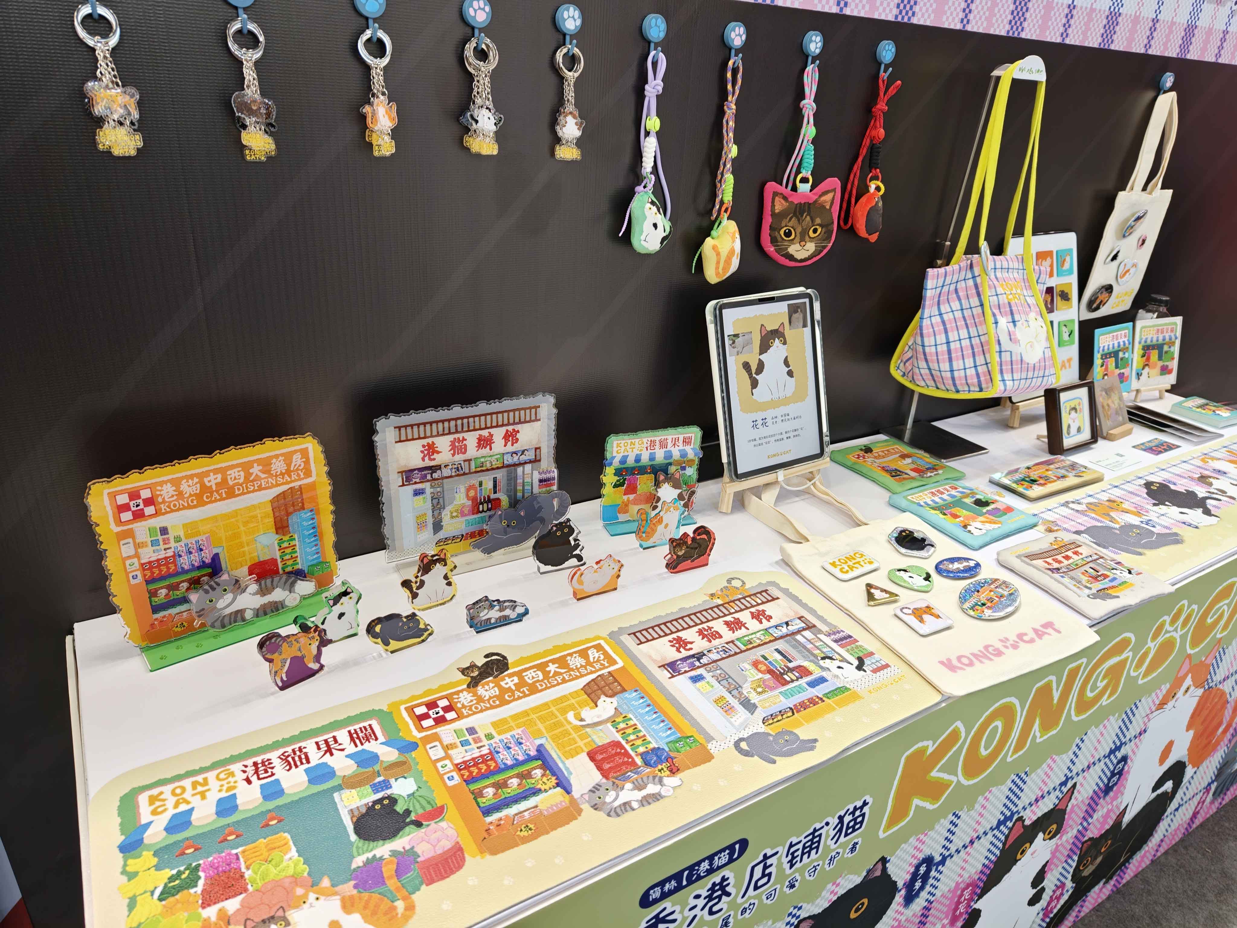 香港設計師、玖加貳文創設計(深圳)有限公司總經理麥宇瀚以自己收養的多隻流浪貓為原型,結合香港臨街店舖為背景,創造了香港店舖貓的原創IP,在展位中他帶來了港貓系列的裝飾立牌、徽章、手袋、手拿包等多個形態的產品,萌趣的貓貓形象吸引了不少觀眾。「這次帶來的展品,都是由內地工廠製作的,從提交方案到出樣品只用了兩周的時間。」麥宇瀚表示,內地工廠對設計師的方案理解度很高,對材料的選擇也更精準,大大提高了設計師與廠家之間的溝通效率。「之後如果產品需要量產,我也會優先選擇內地廠商合作。」