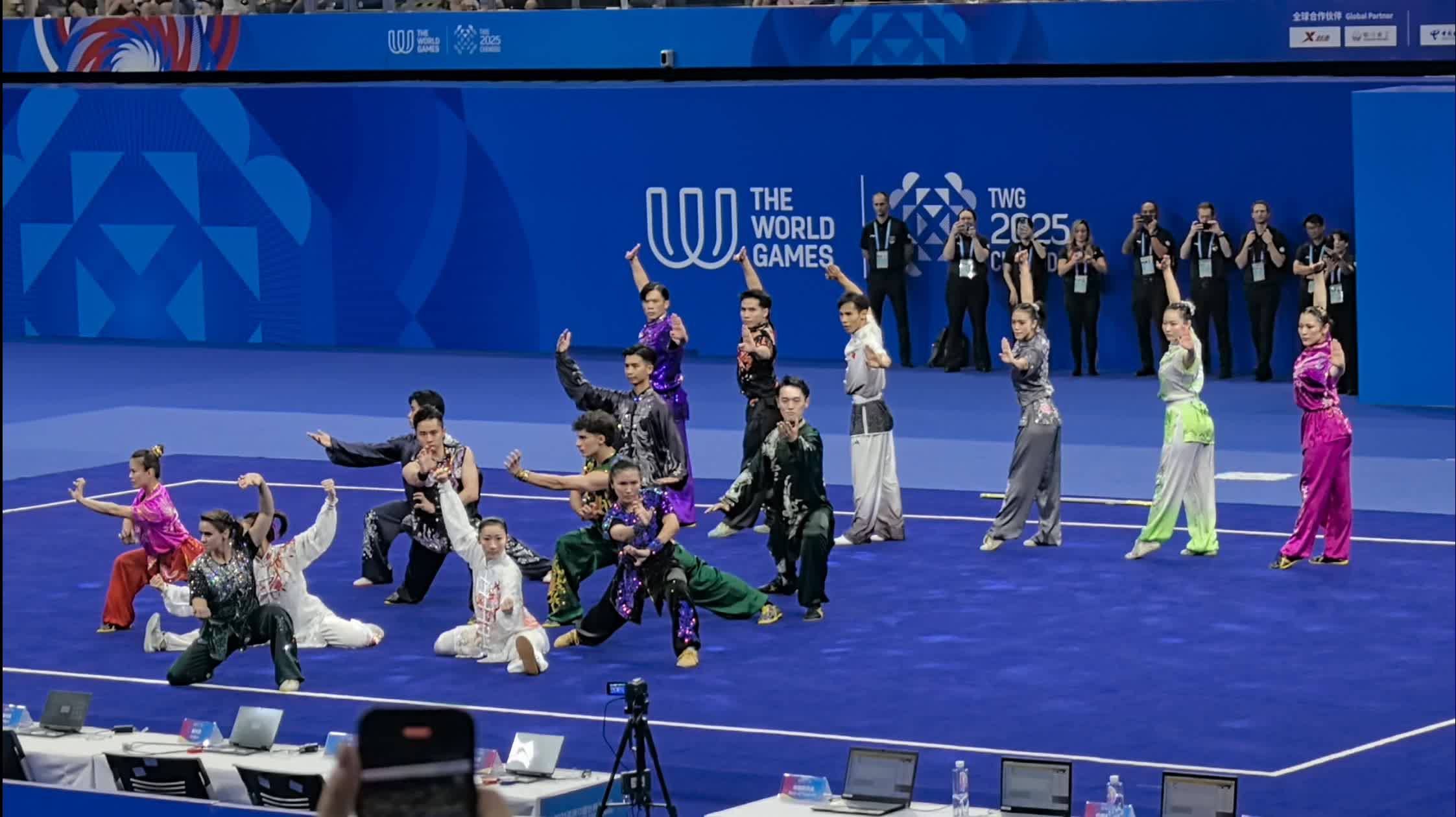 值得一提的是,8月9日恰好是世界武術日,主題為「太極之韻,世界共享」。在當日的武術套路比賽全部結束後,來自世界各地的十餘位武術運動員還為現場觀眾獻上了一場精彩的武術表演,讓大家直呼過癮。